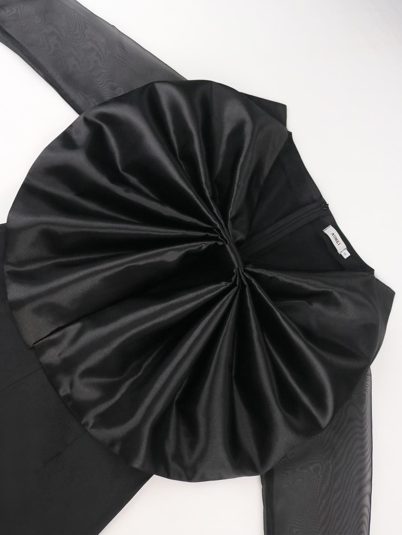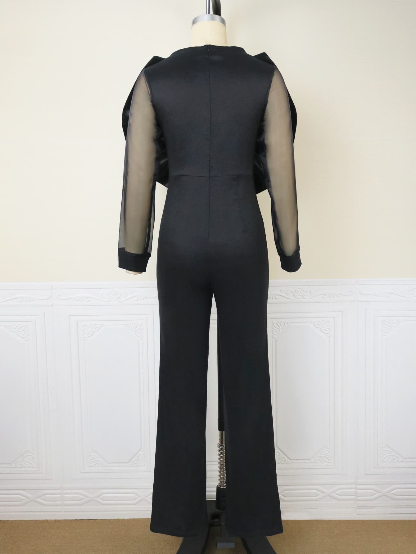 Elevate your evening style with our Black V-Neck Organza Sleeve Jumpsuit, a striking piece designed for those who love to make a statement. This elegant jumpsuit features a deep V-neckline that adds a touch of allure, while the long organza sleeves offer a delicate and sophisticated contrast.