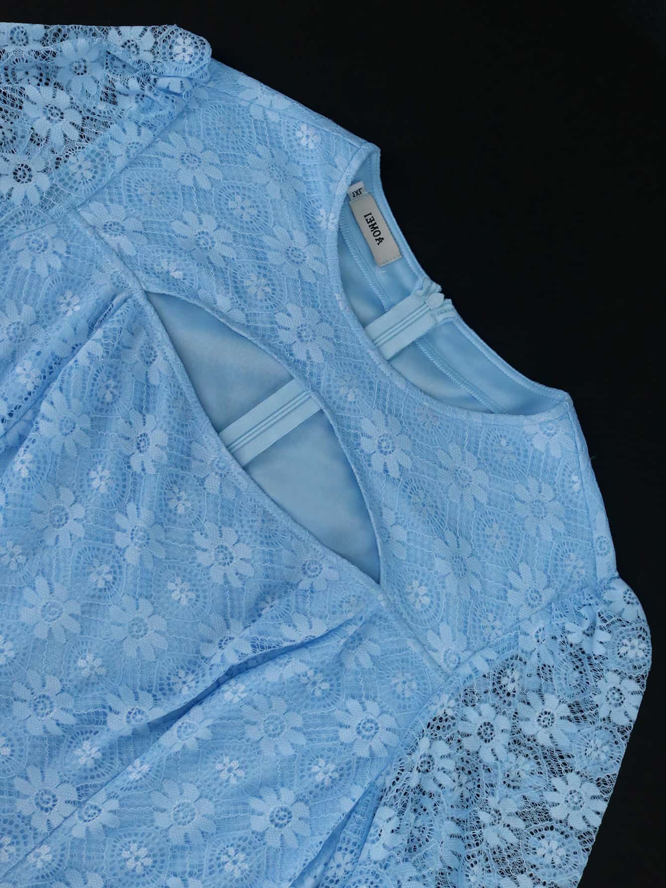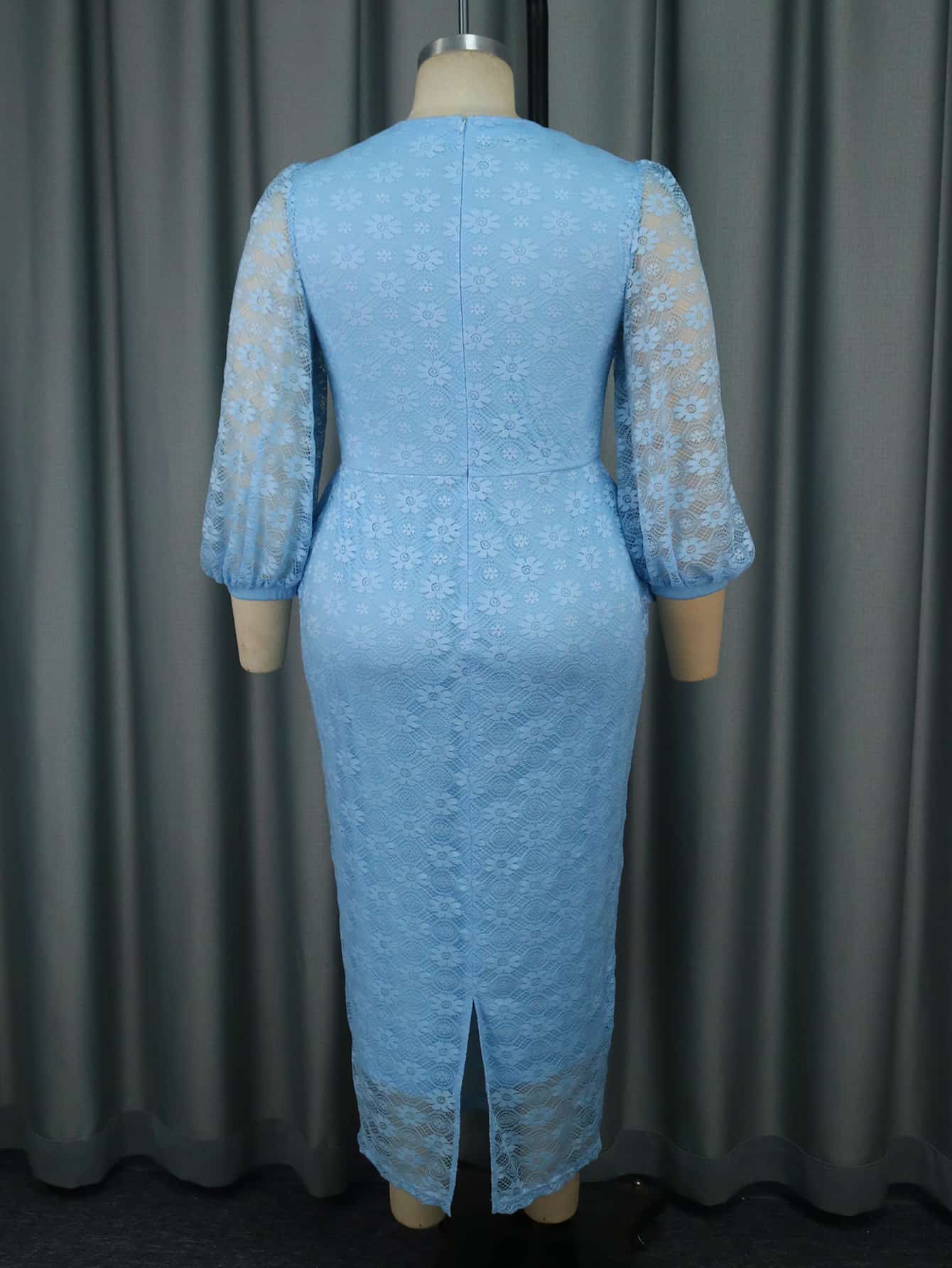 Embrace timeless elegance with our Blue Floral Lace Dress, designed to turn heads at any occasion. This stunning dress features a classic O-neckline and intricate floral lace detailing, adding a touch of romance and sophistication. The sheer lantern sleeves with cut-out accents offer a modern twist, creating a subtle yet alluring look.