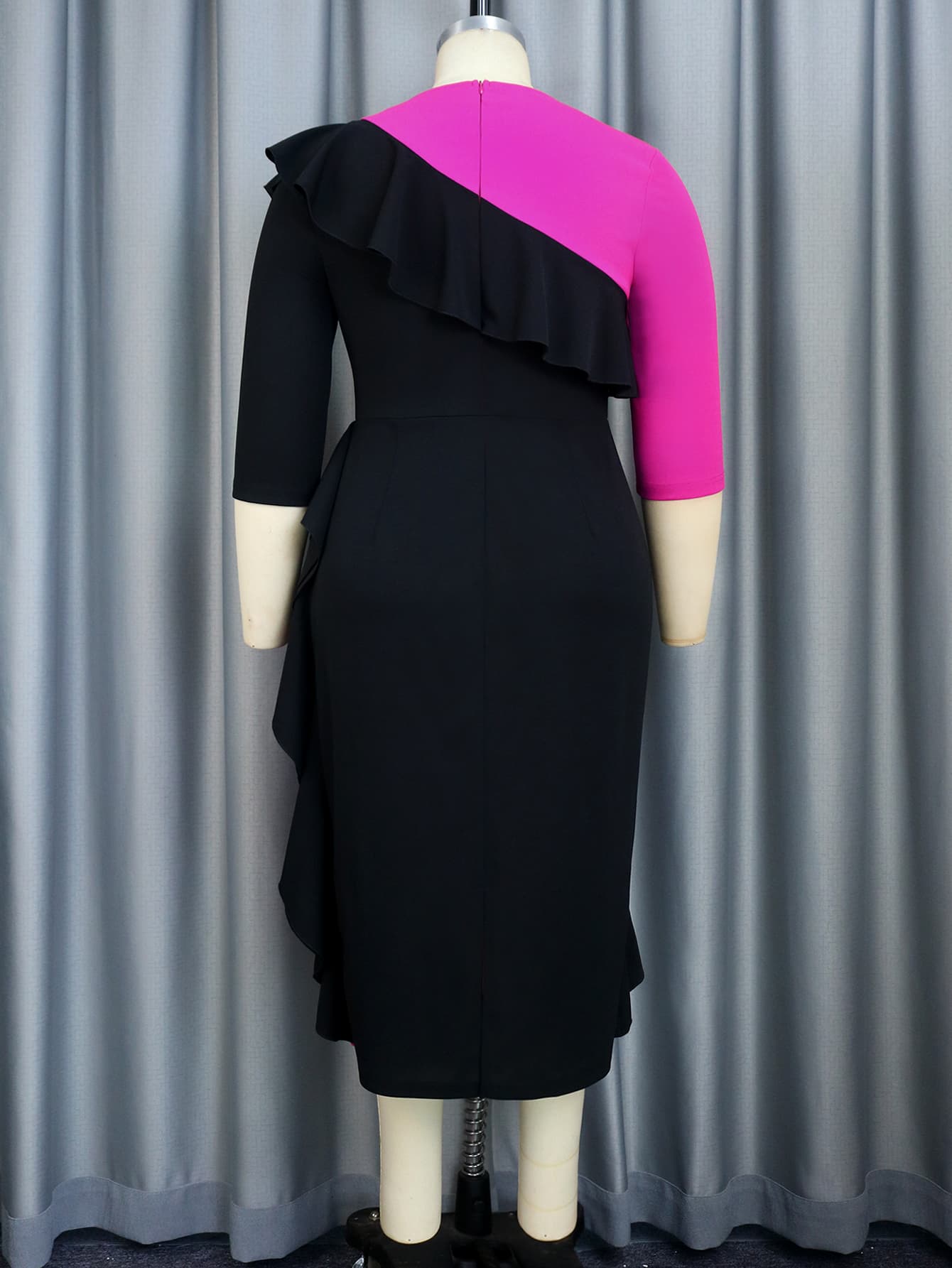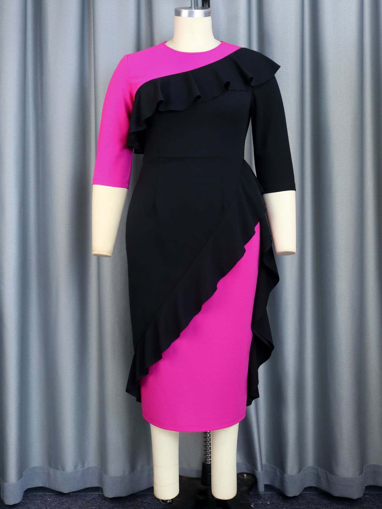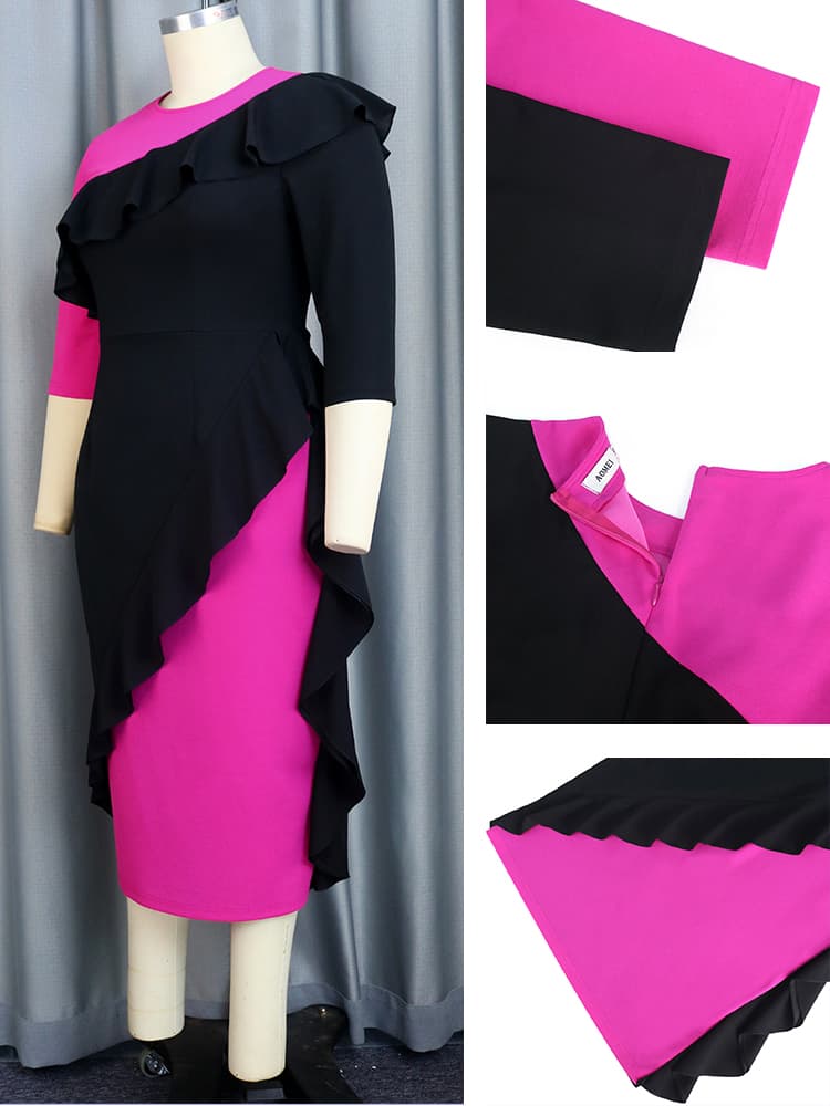 Styles: O Neck,Half Sleeve,Ruffles Decoration,Patchwork,Midi Slim Fit Dress