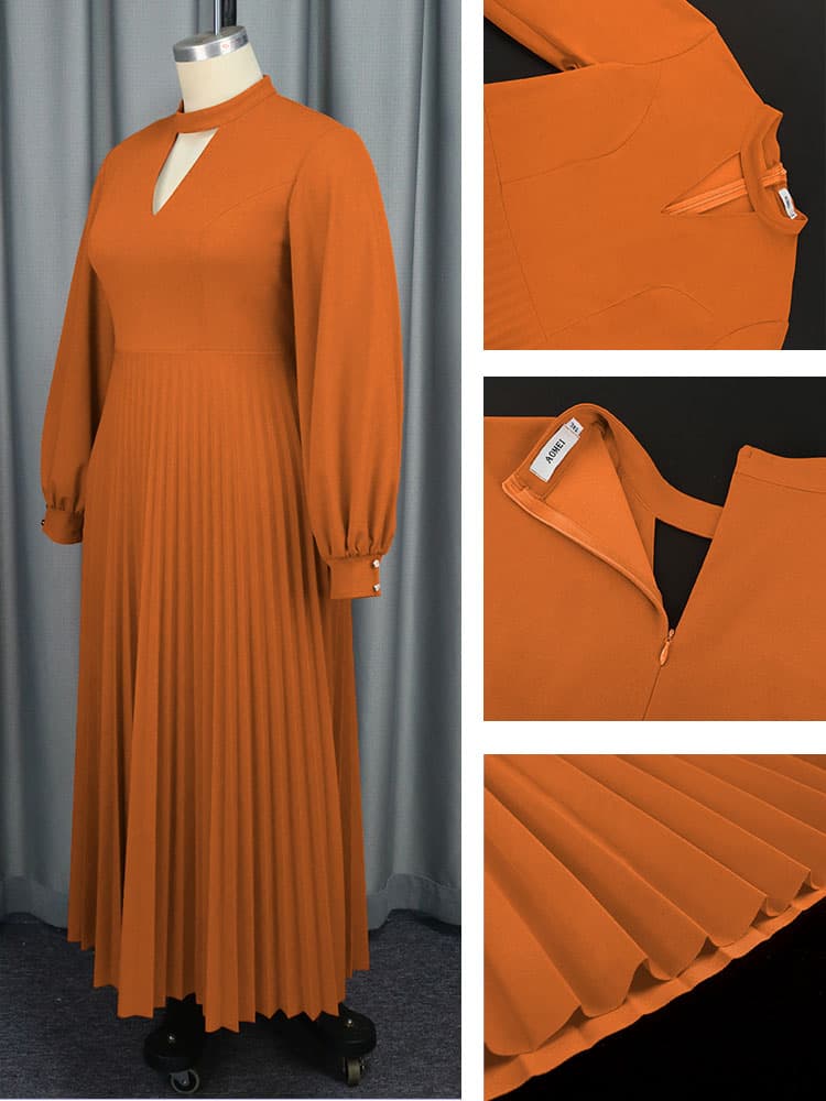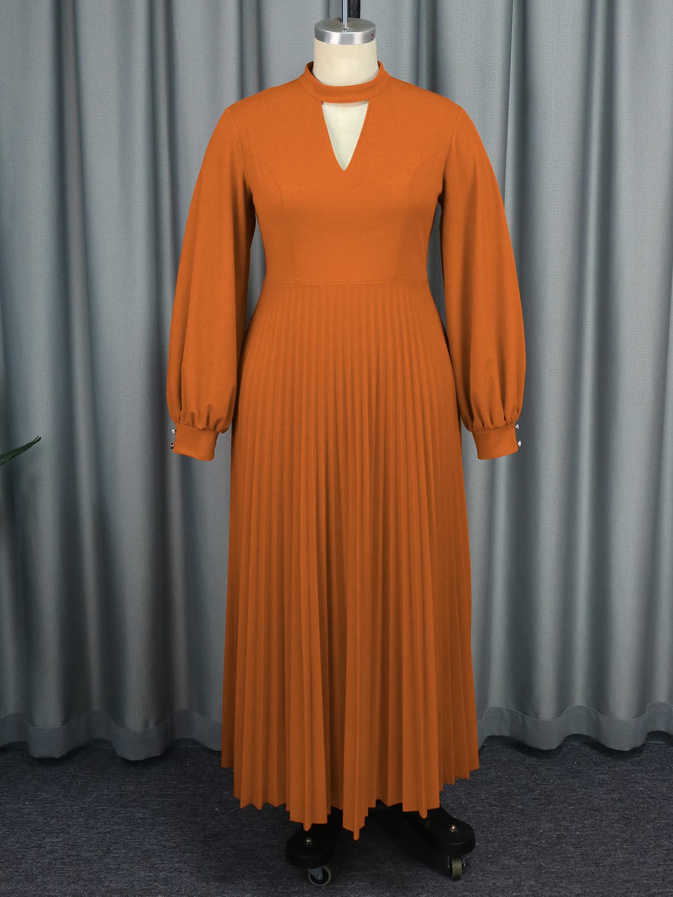 Styles: Mock Neck,Cut Out,V Neck,Lantern Sleeve,Full Sleeve,High Waist,Ankle Length,Elegant Women Pleated Dresses