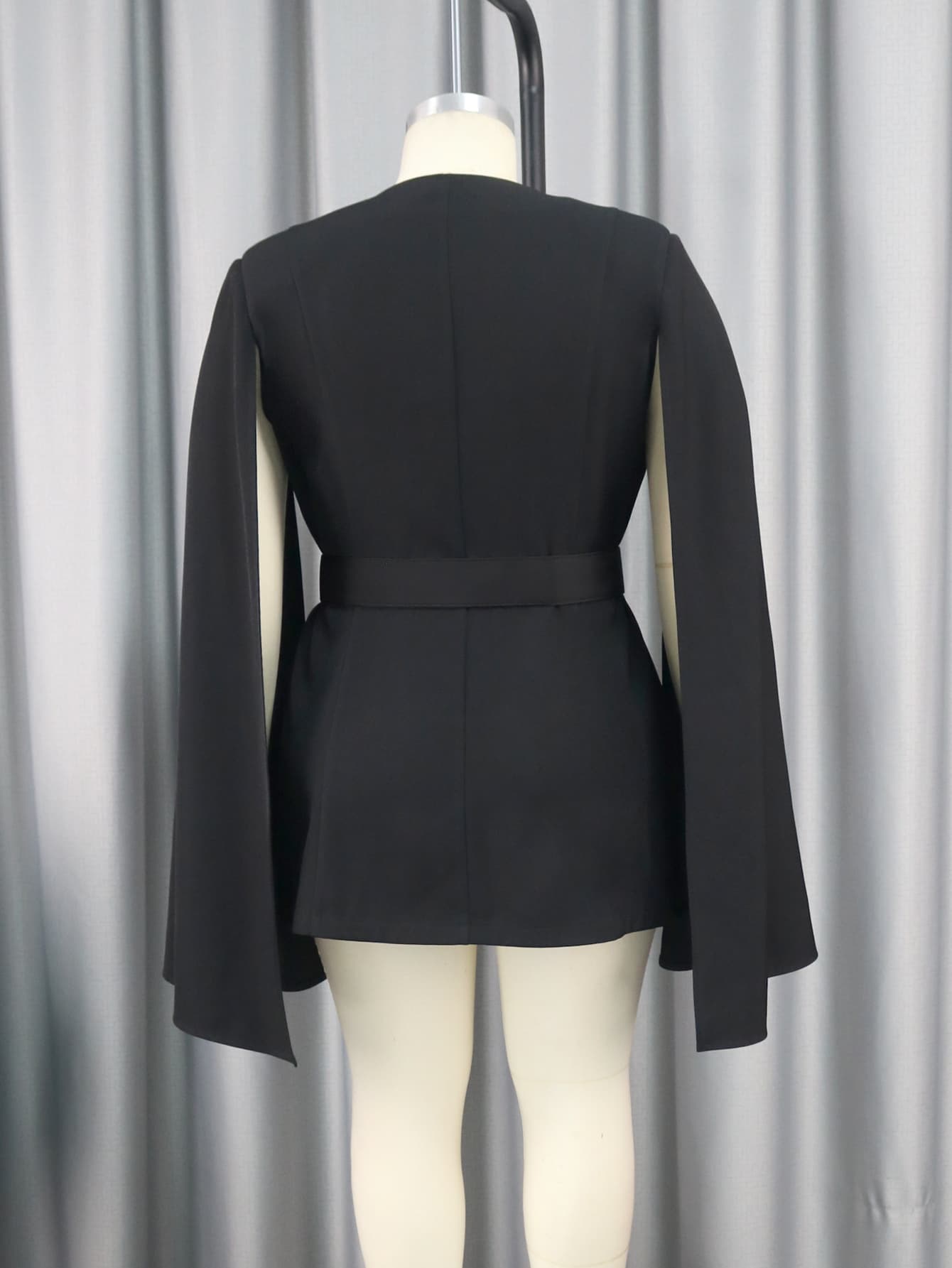 V-neck,cloack Sleeve,with waist belt,the cloack sleeve is a fashional design.