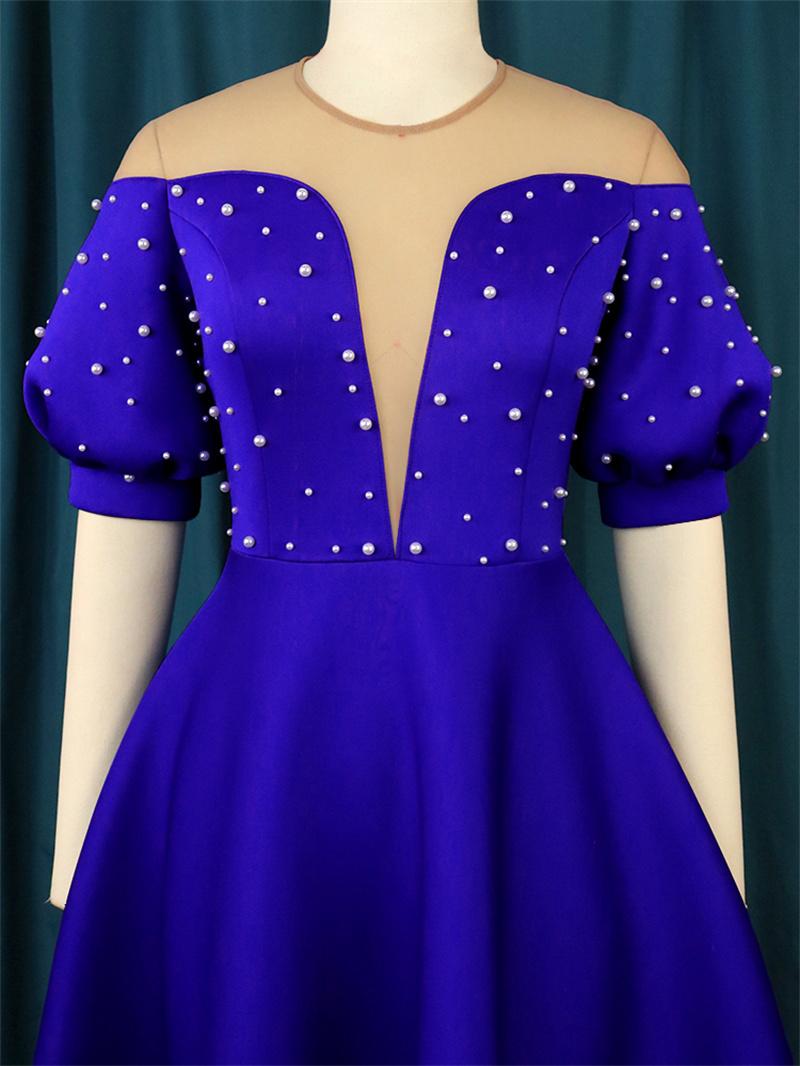 Luxury Tulle Beaded Patchwork A Line Dress for Women,Made of high quality fabric and embellished pearl beads.