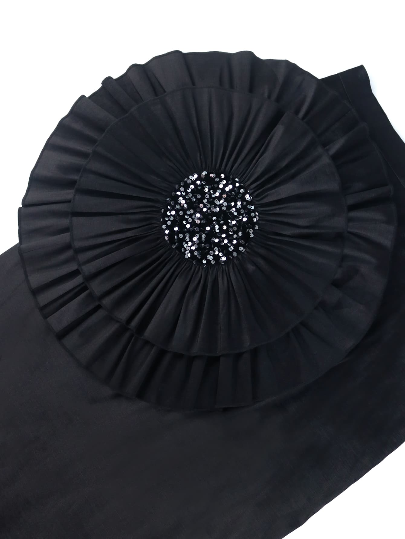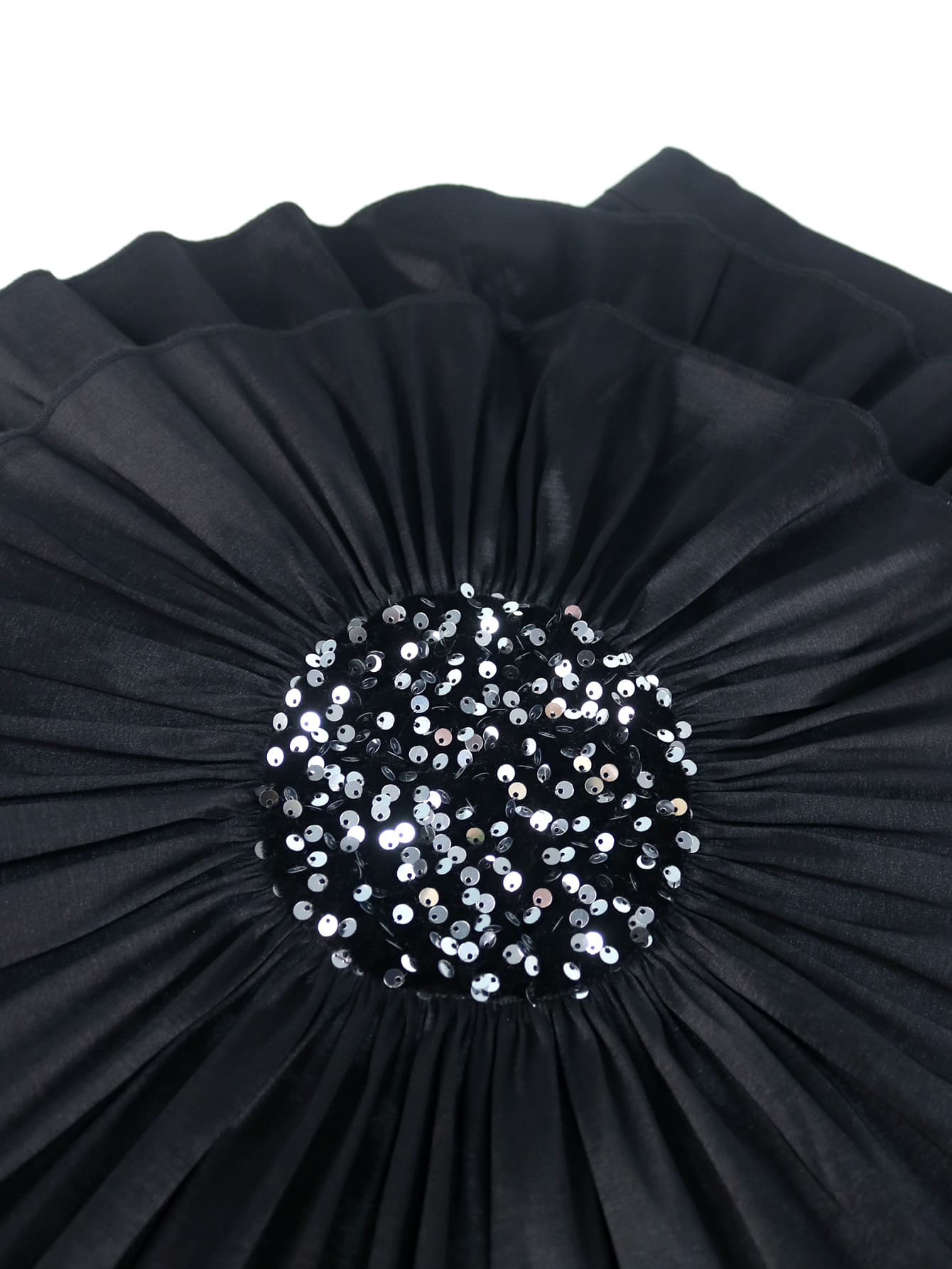 Styles: High wiast,flower design sequins elastic knee length skirts for ladies.