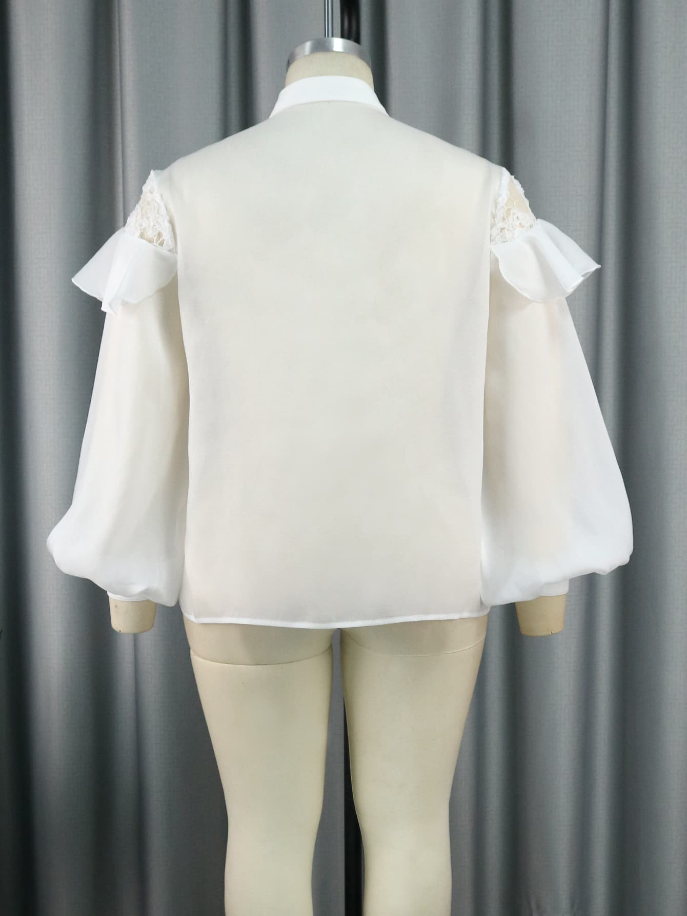 Chiffon Long Lantern Sleeve Button Up Transparent Shirts for Ladies 2024