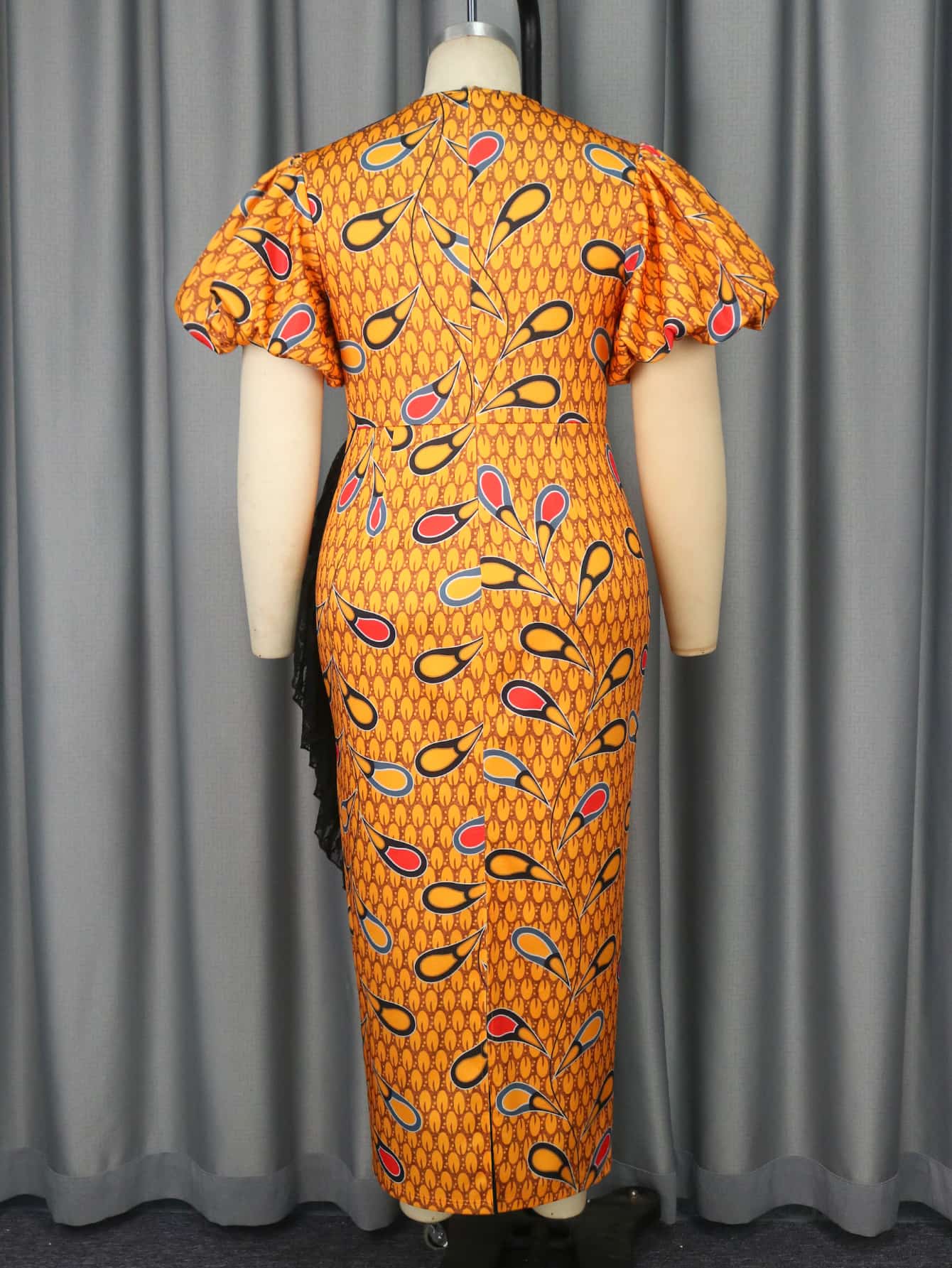 The short lantern sleeves bring a soft, graceful touch to the design, while the slim silhouette flatters the figure, making it an ideal choice for women who want a polished and feminine look. Designed for comfort and sophistication, this gown offers a timeless appeal that’s suitable for any formal or semi-formal event. From a chic day look to an evening ensemble, this versatile dress ensures you always feel beautifully put together. Ideal for wholesale buyers looking to offer clients a unique and stylish addition to their wardrobes.