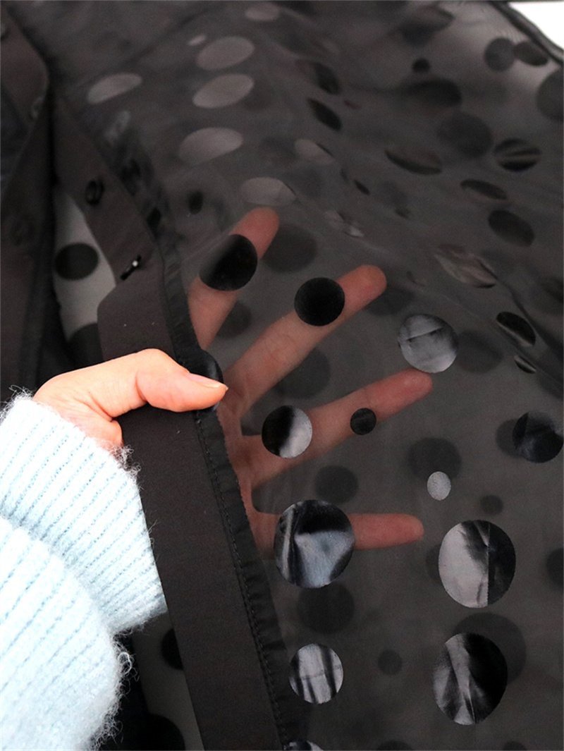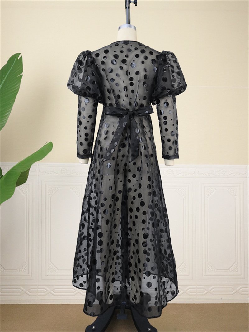 Long Puff Sleeve Organza Polka Dot Ankle Length Transparent Dress with Button