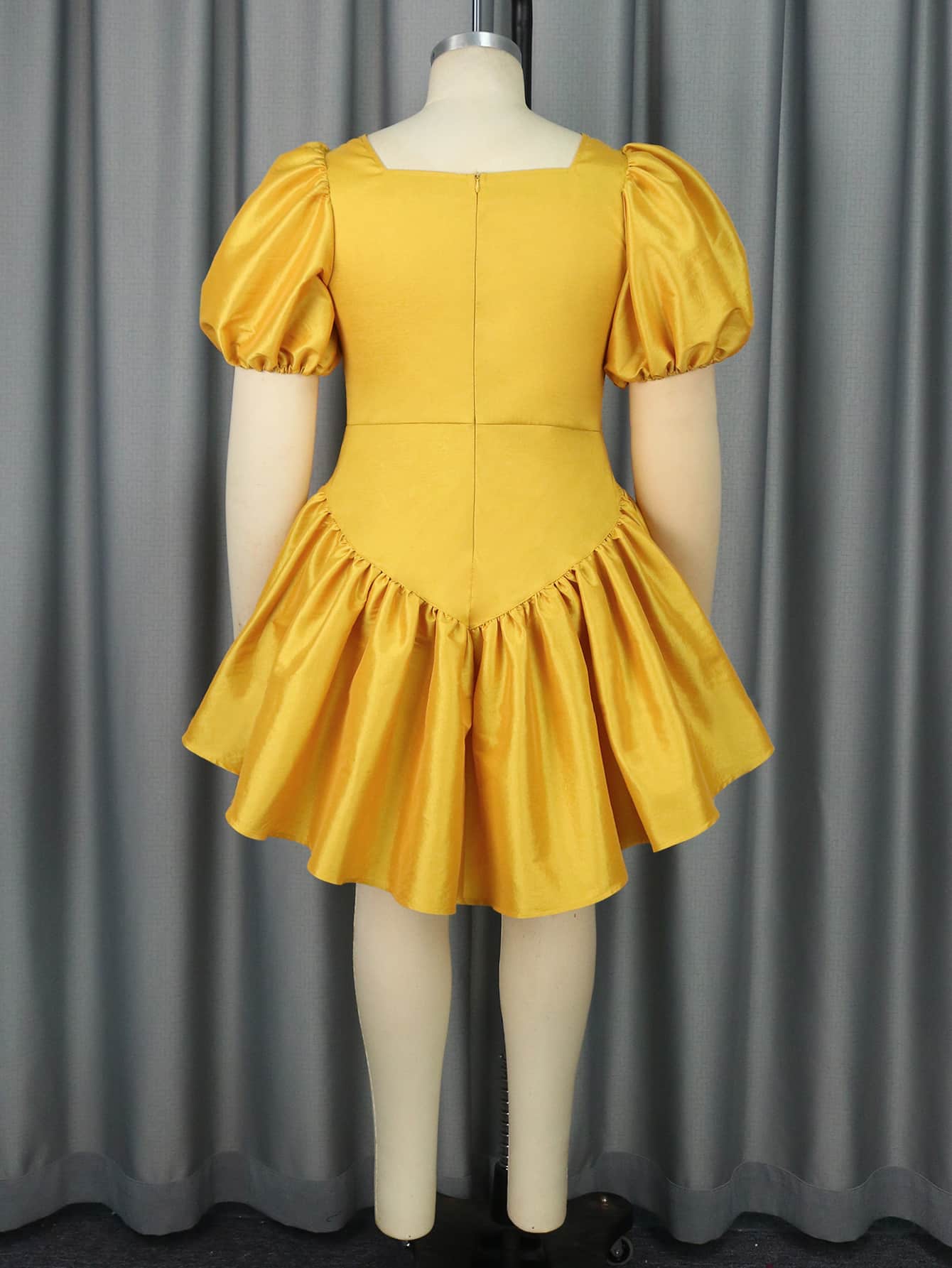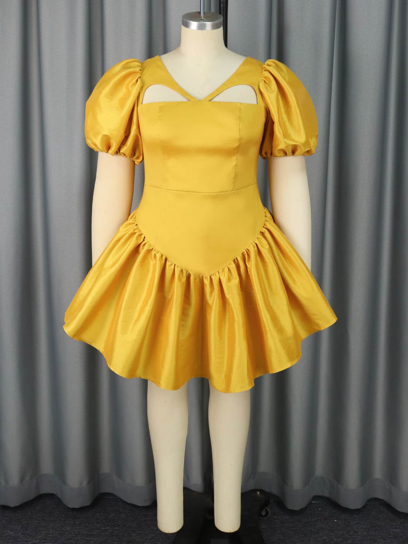 Slim Fit Short Puff Sleeve Ruffles Sexy Above Knee Length Party Dress for Ladies.