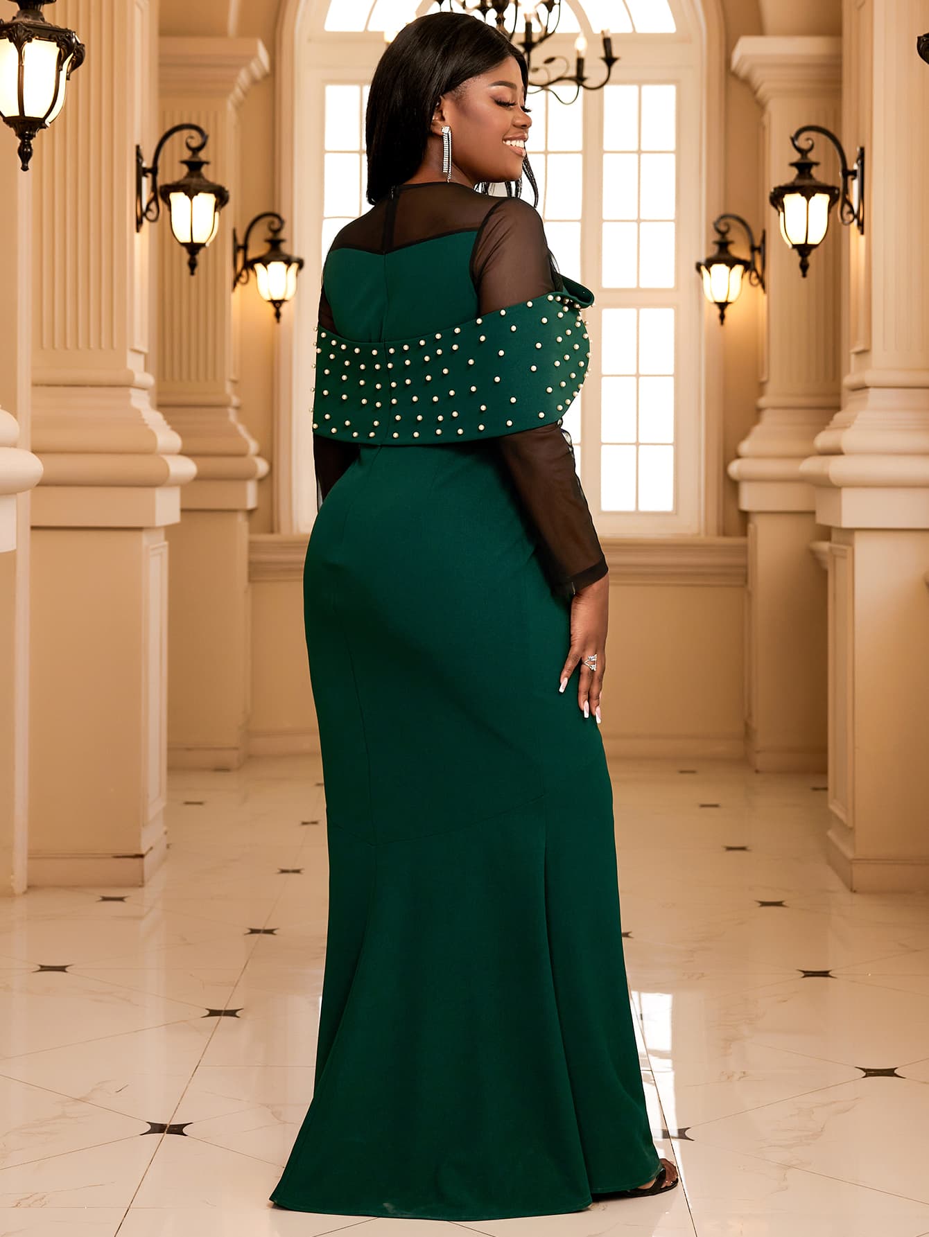 Styles: See Through Mesh Sleeve,Beaded,Empire,Back Zipper,Package Hip,Fishtail Maxi Dresses.