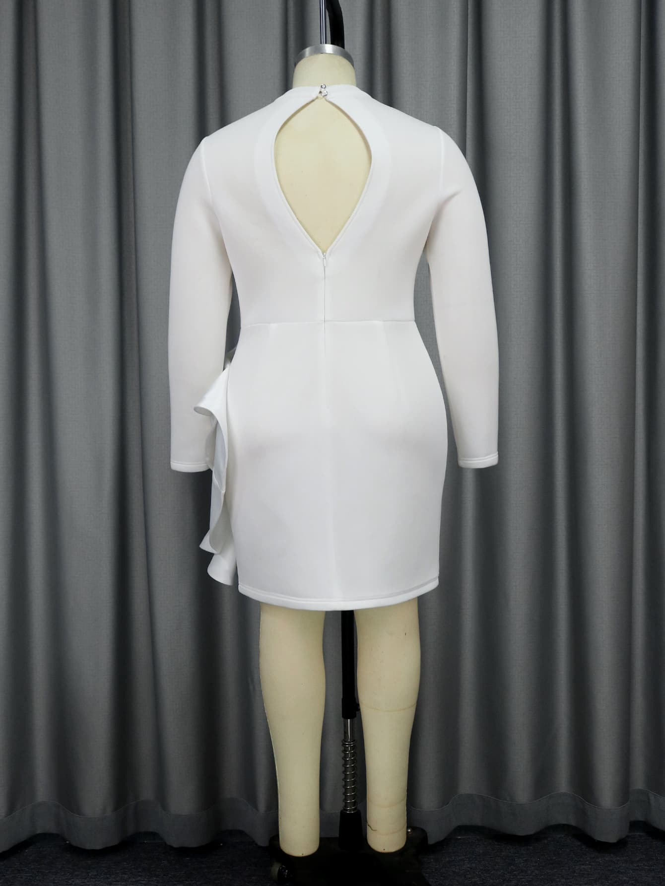 Mock Neck Long Sleeve Tight Bodycon Knee Length Flowery Wedding Dress