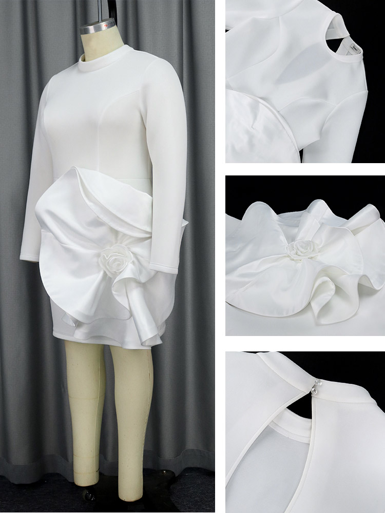 Styles: Mock Neck,Long Sleeve,High Waist,Bodycon,Big Flower Design,Package Hip,Chic Women Cocktail Wedding Guest Party Dress