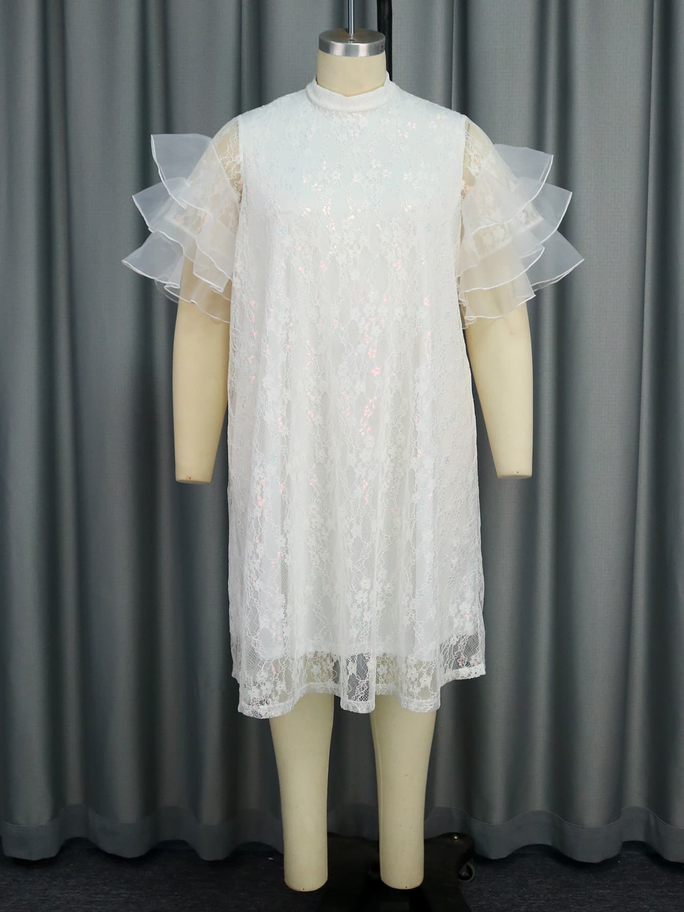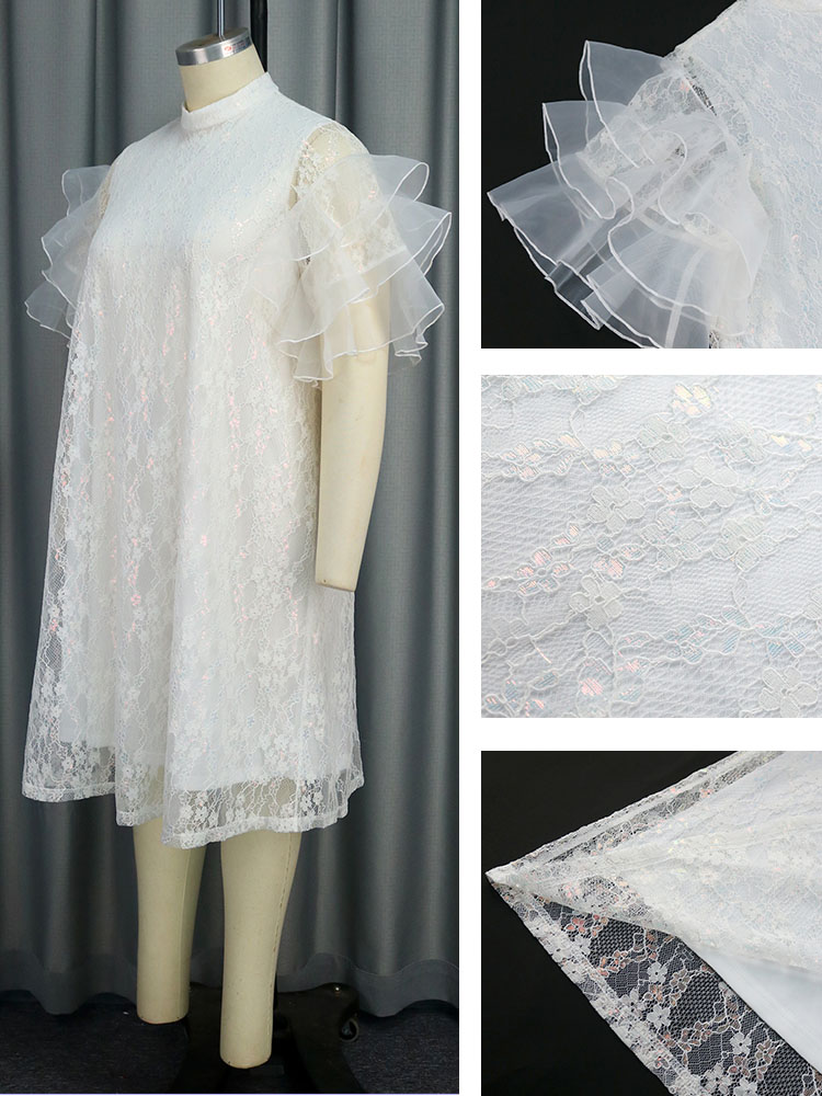 Dress Style:Mock neck,short sleeve,ruffles,loose,lace,pullover,invisible zipper,midi length dresses.