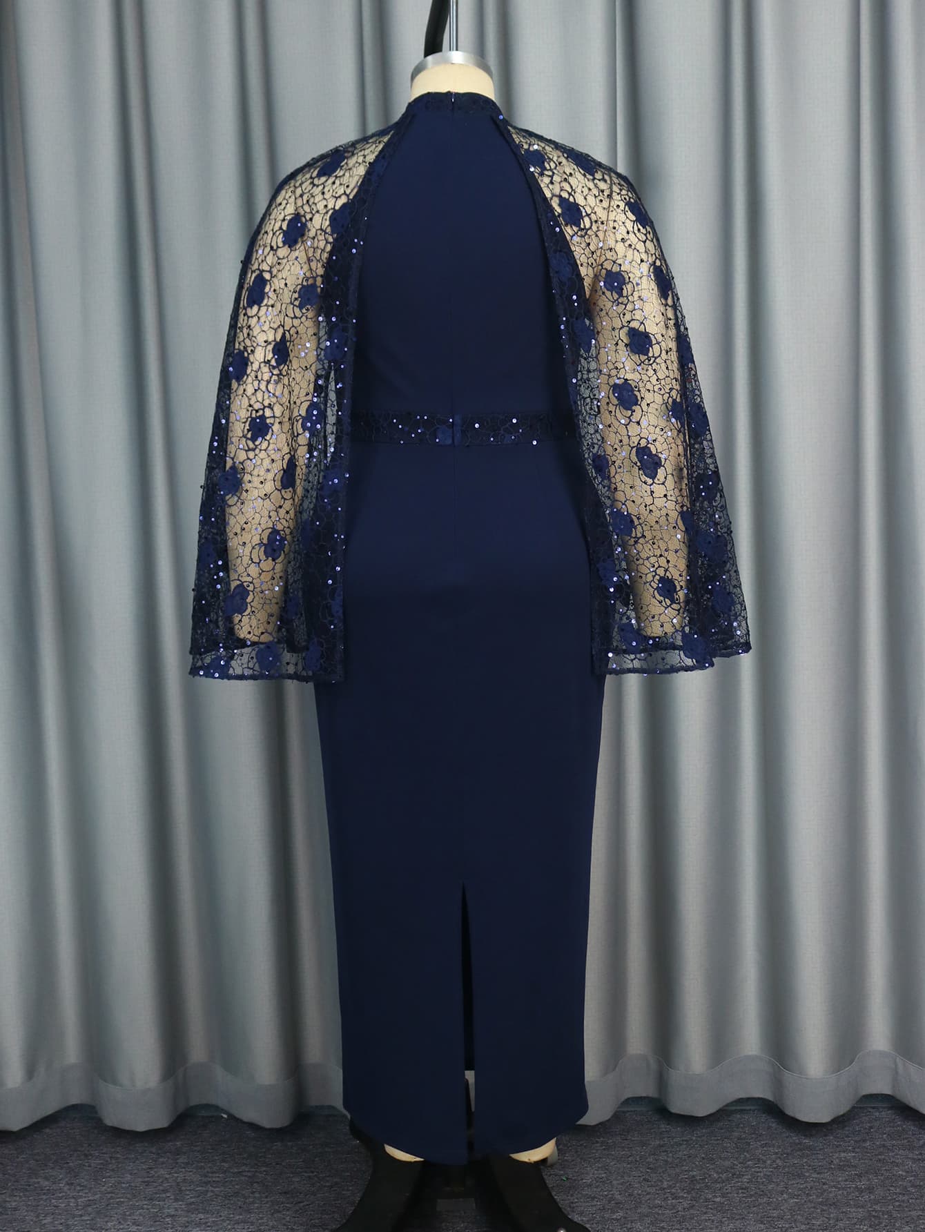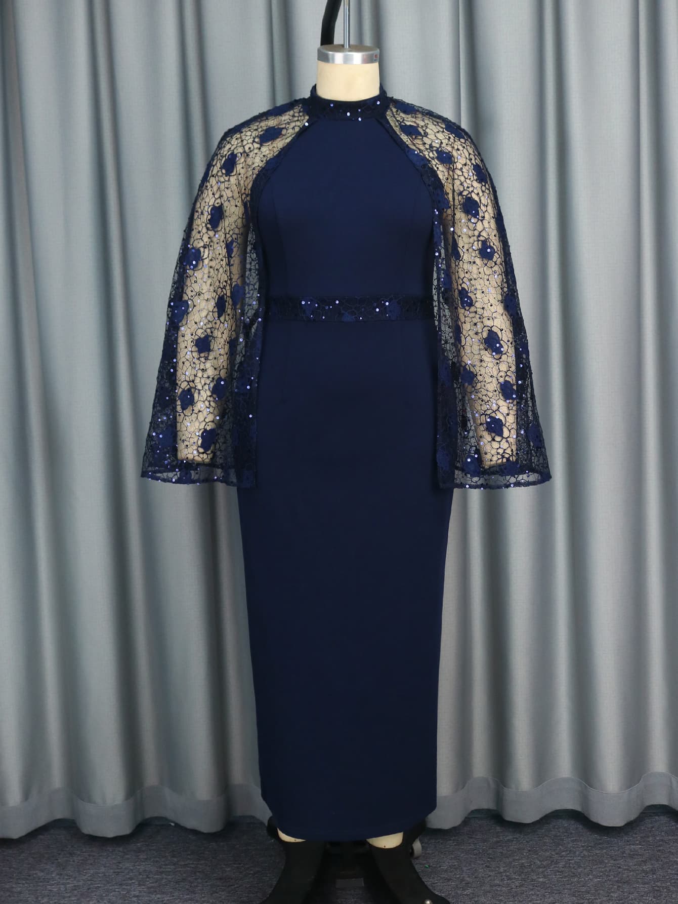 Dress Style: half high collar, long cloak sleeve, lace patchwork, sequins, invisible zipper,maxi length dresses for women.