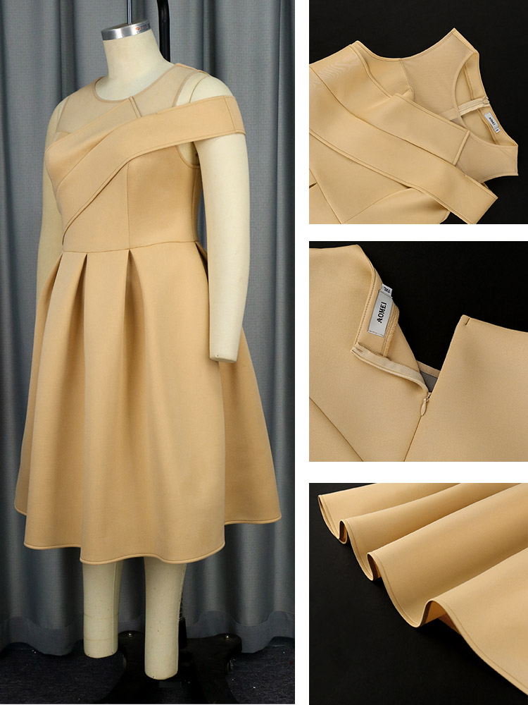 Styles: Sleeveless O Neck High Waist A Line Midi Gowns Outfits for Ladies