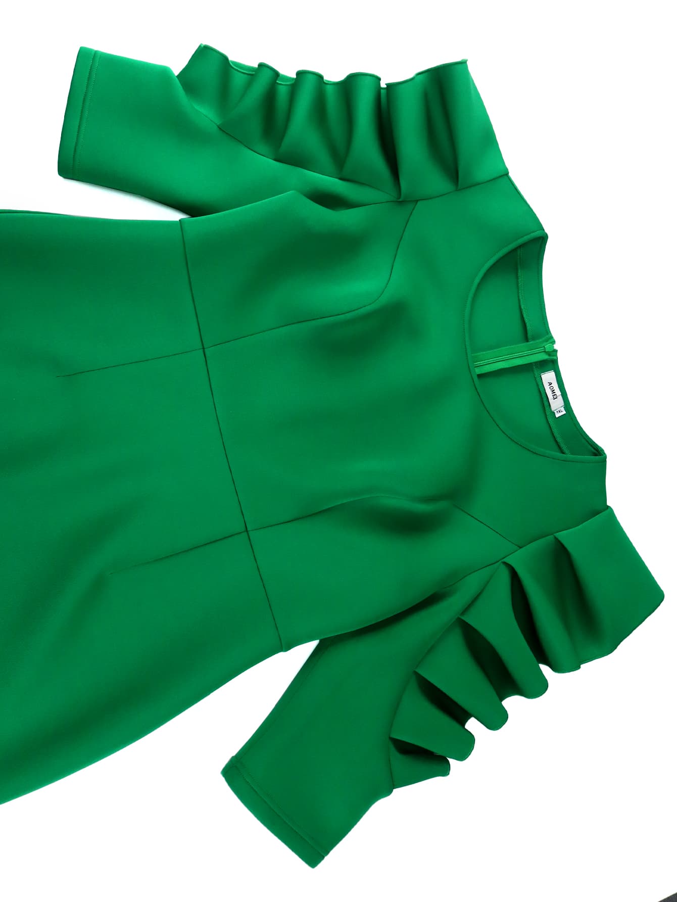 Dress Style: Lotus leaf sleeves, solid color splicing, invisible zipper, Christmas green dress