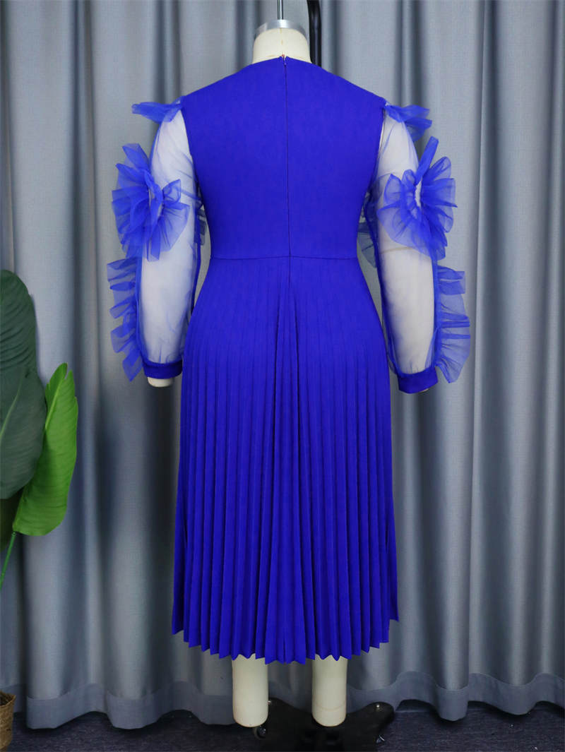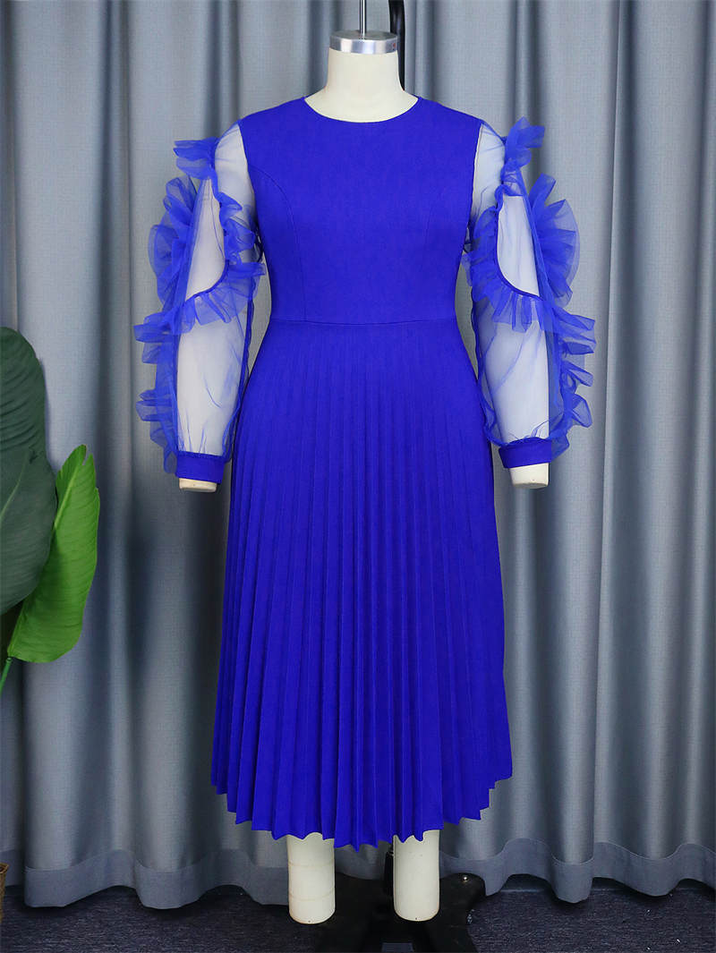 tulle patchwork dress see through sleeve with sewing ruffles make the dress special