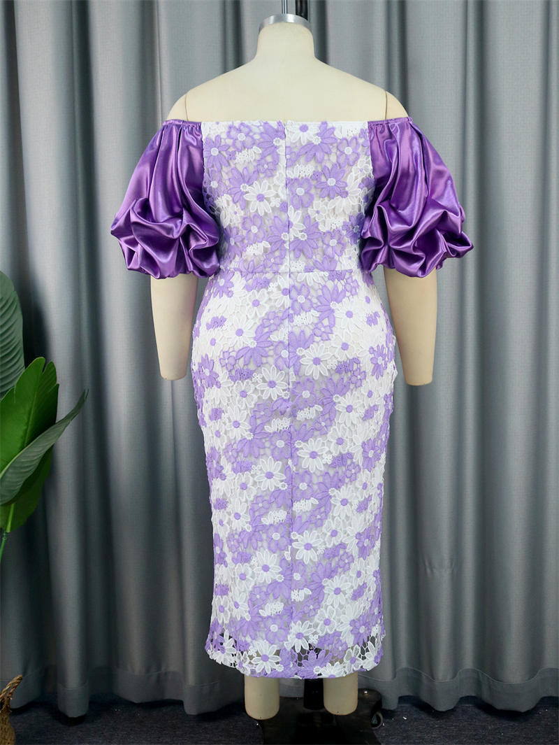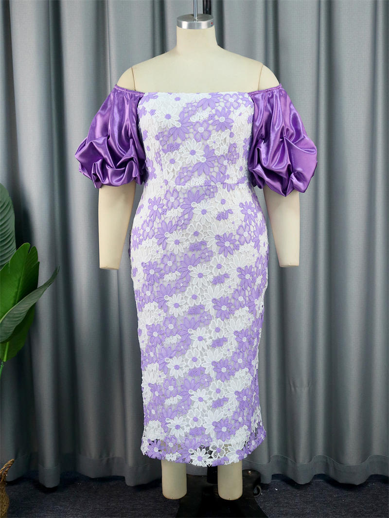 Off Shoulder Dress,Puff Sleeve,Color Block Midi Length Gowns.
