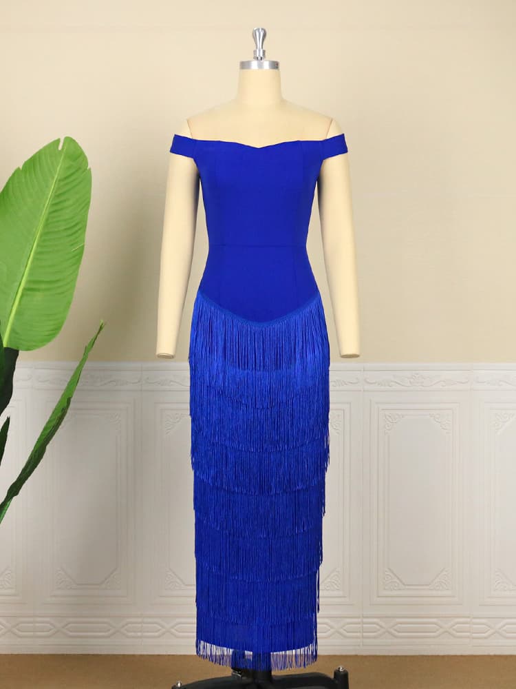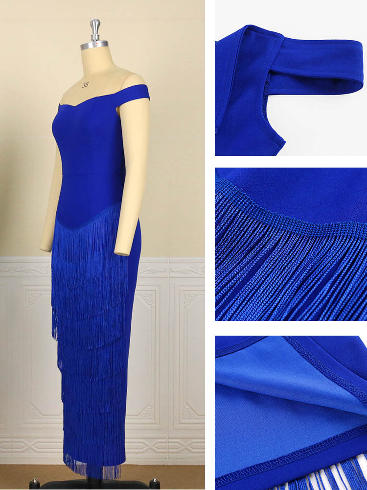 Styles:Tight Women Fringe Tassel Dresses,Off Shoulder Sleeveless High Waist Women Party Gowns