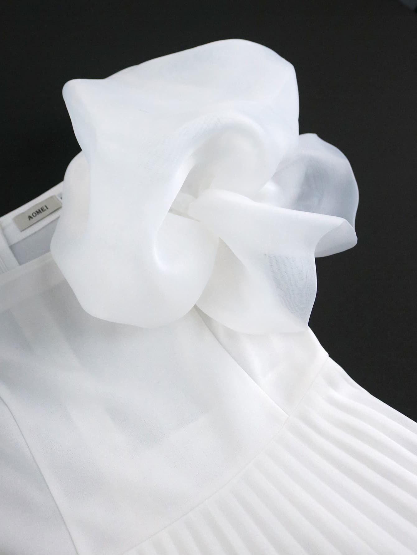Short Puff Sleeve High Waist A Line Pleated A Line Party Gown Dress