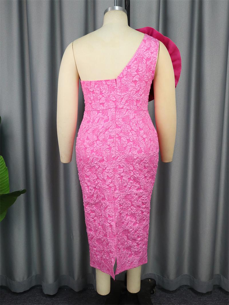 One Shoulder Jacquard Women Midi Dress