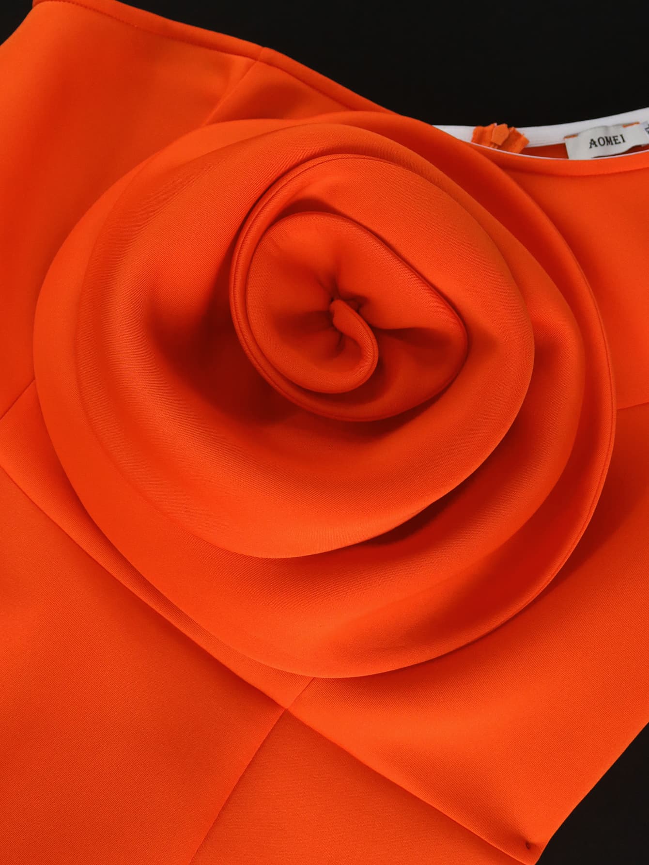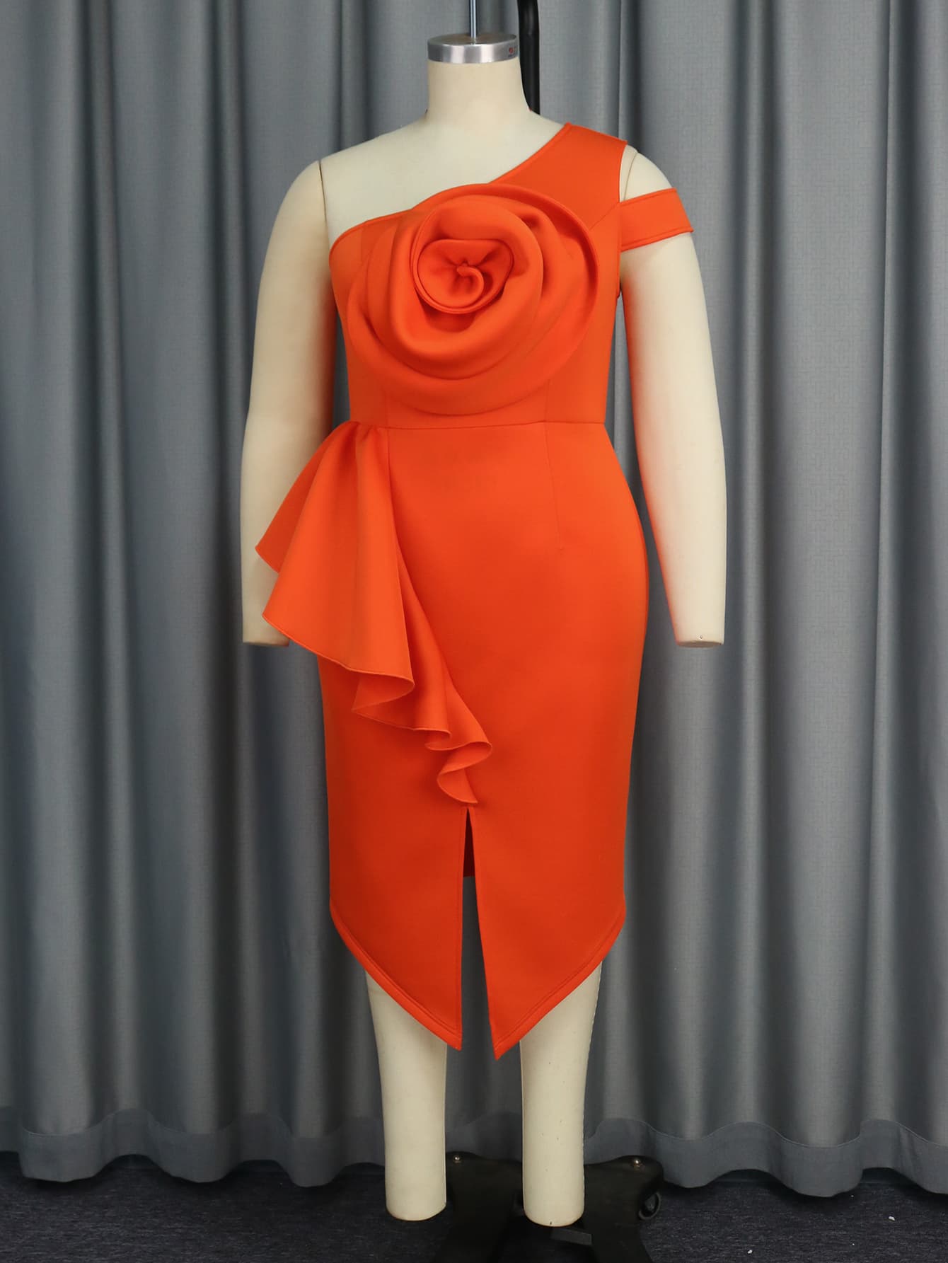 Dress Style: one shoulder, sleeveless, 3D flower, ruffles, invisible zipper,midi length dresses for women.