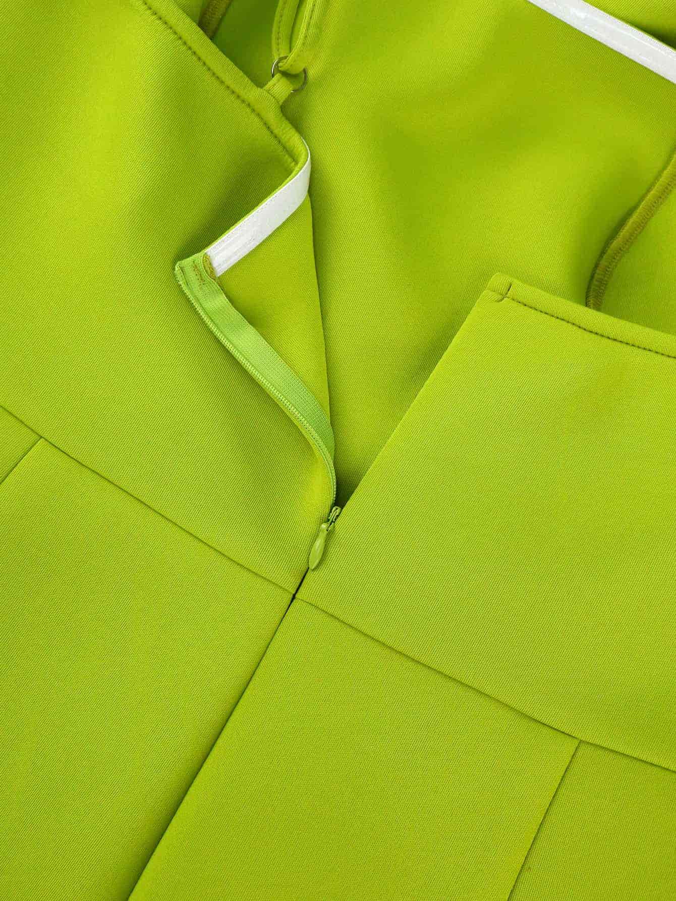 Green Long Dress With Ruffles Spaghetti Strap Cold Shoulder Outfits New Trendy 2024