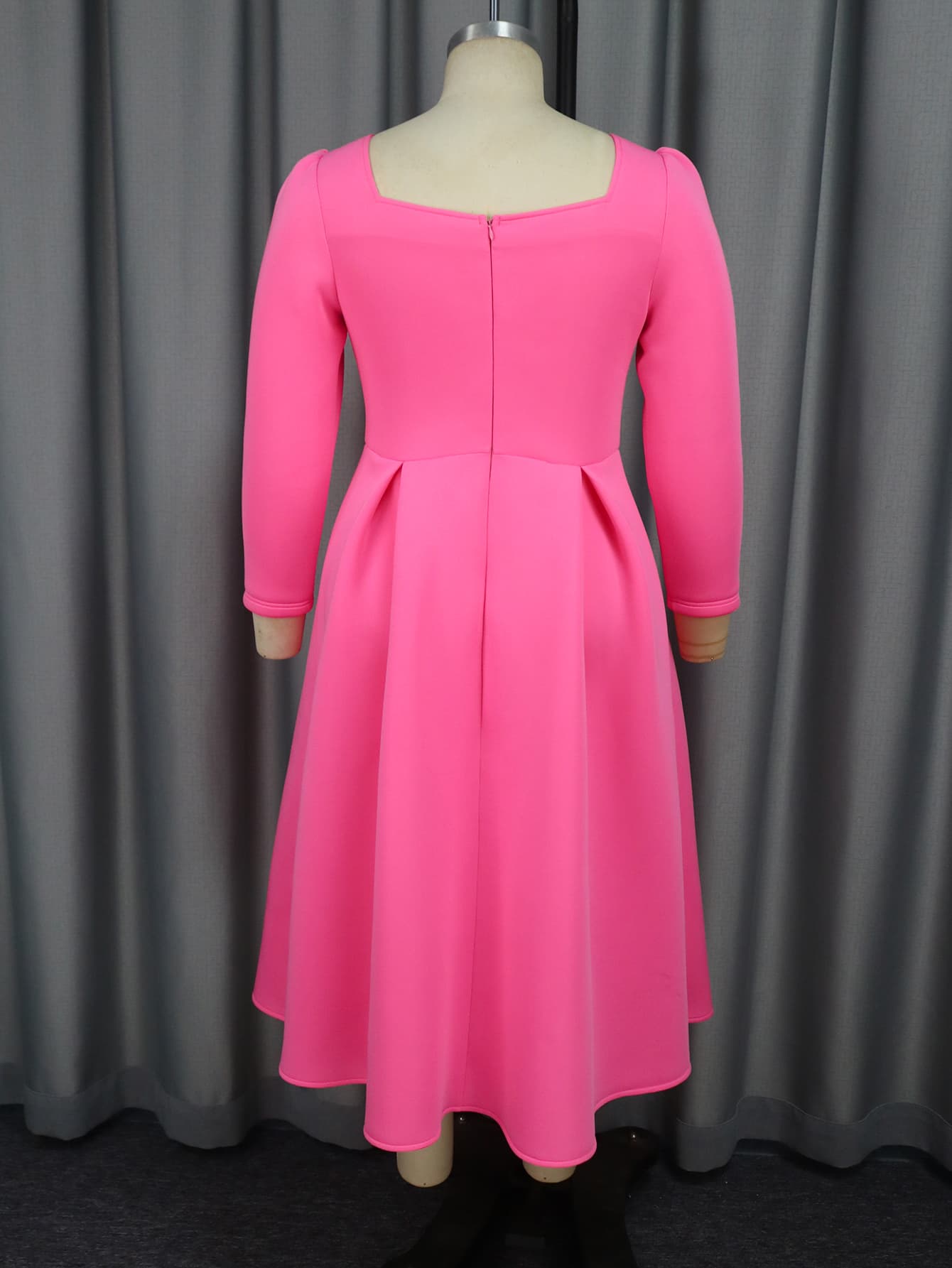 Dress styles: A-line, long sleeved, square collar, invisible zipper, women's mid waist dress.