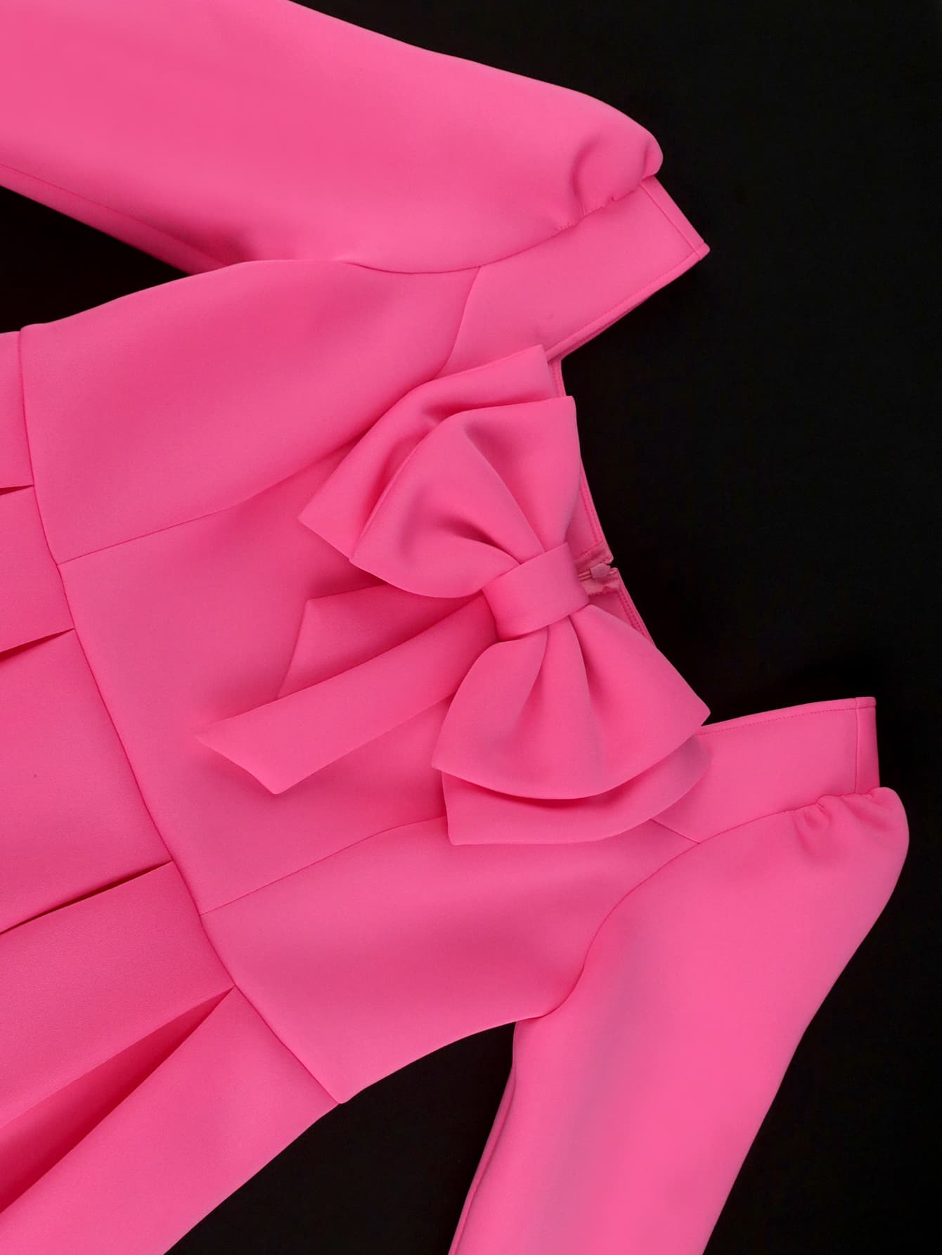 Pink Long Sleeve Bowtie High Waist Wedding Guest Dress Customized Factory
