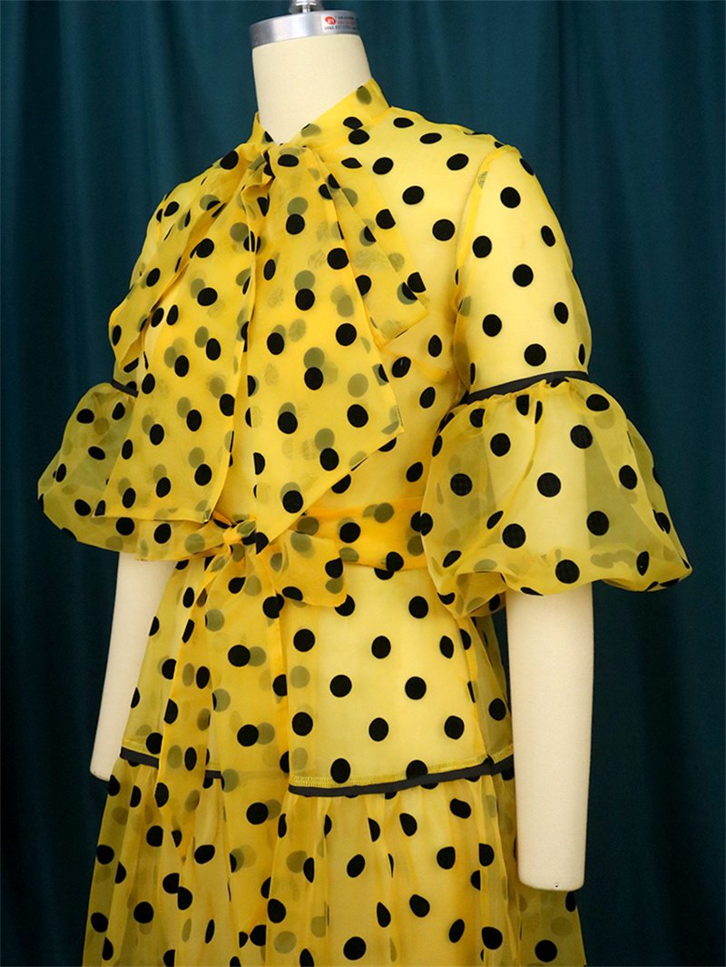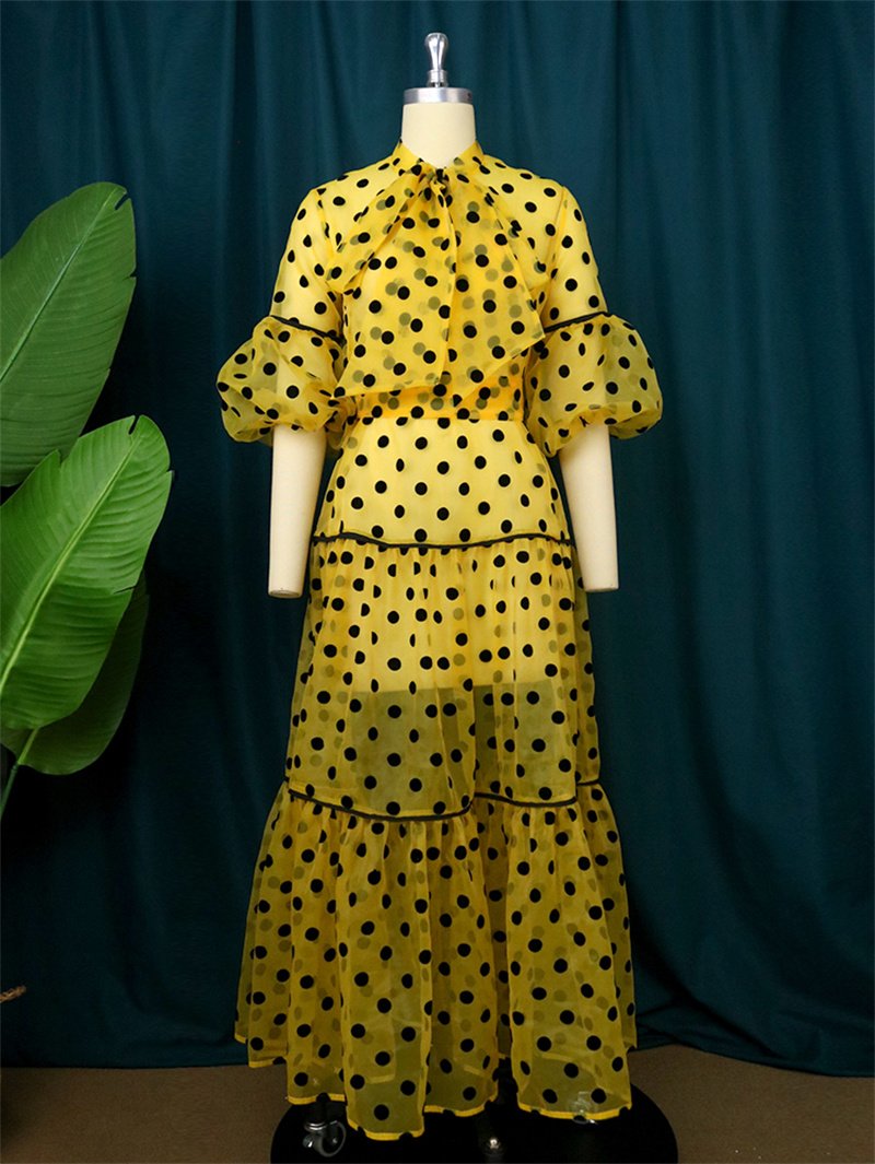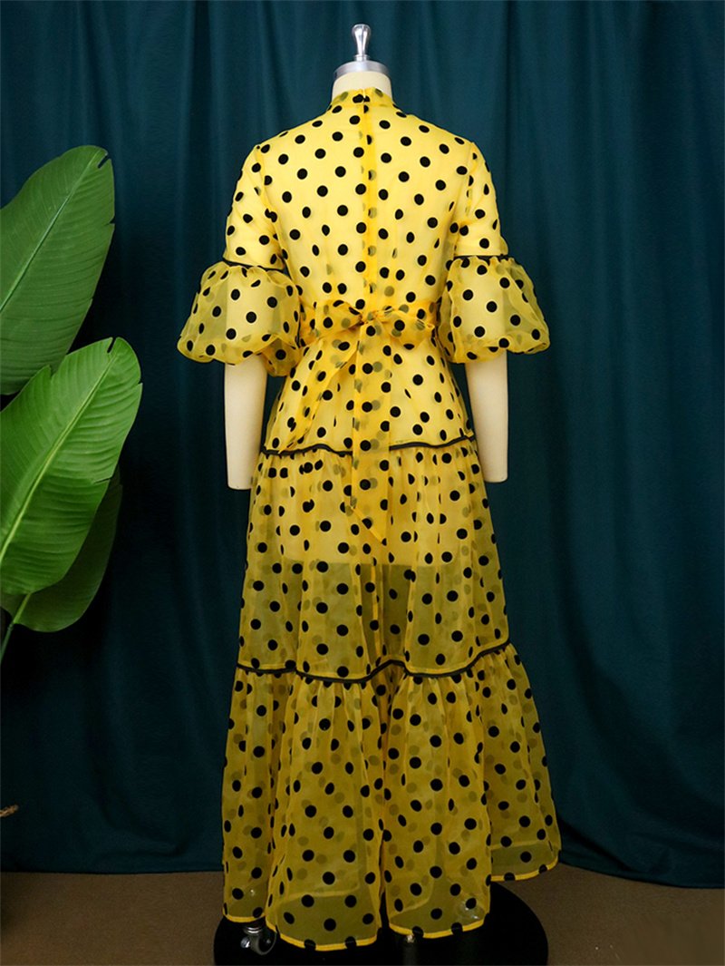 Mesh Tulle Organza,Patchwork,Sexy See Through,Three Quater Sleeve,A Line Long Dress.