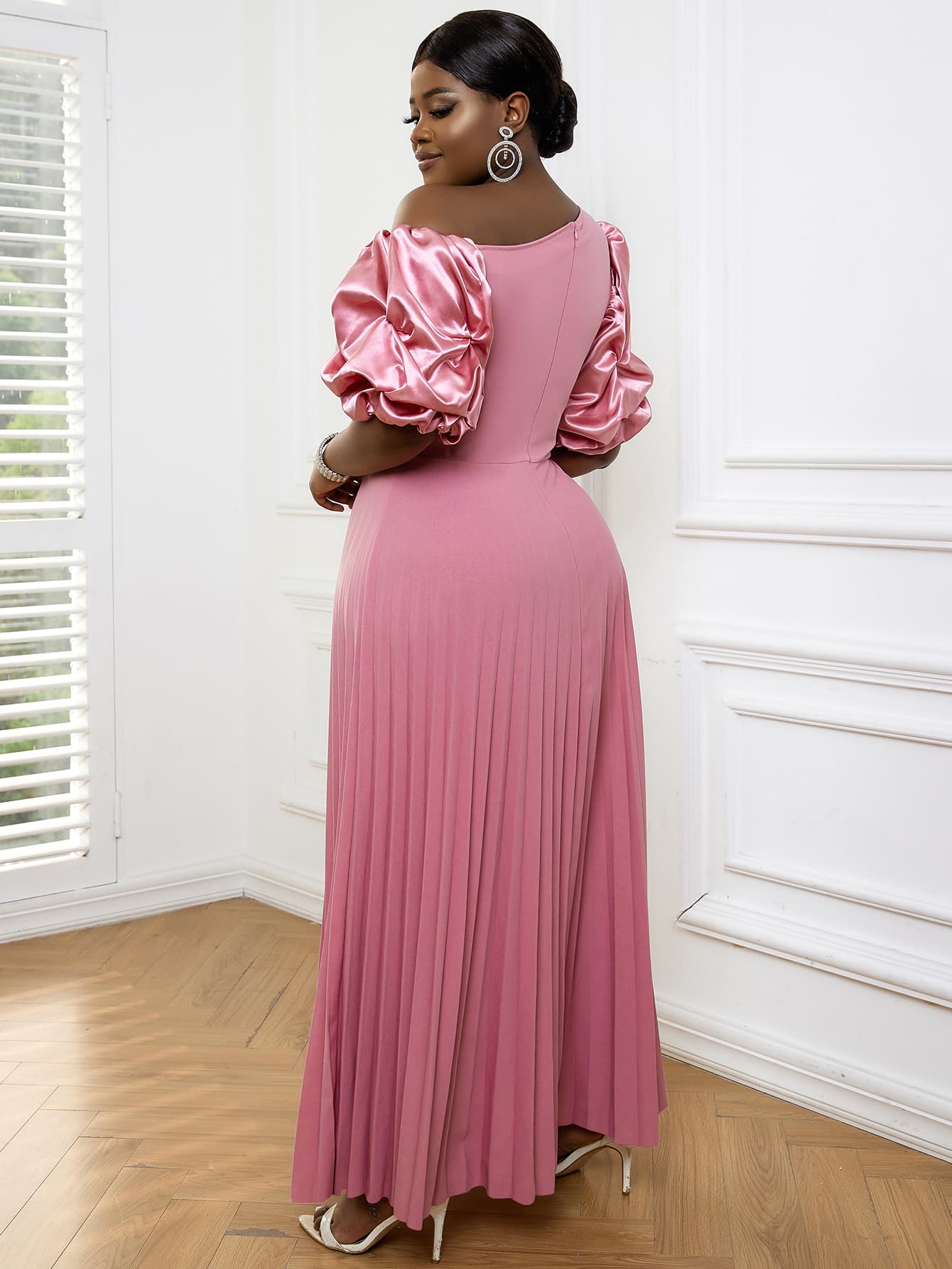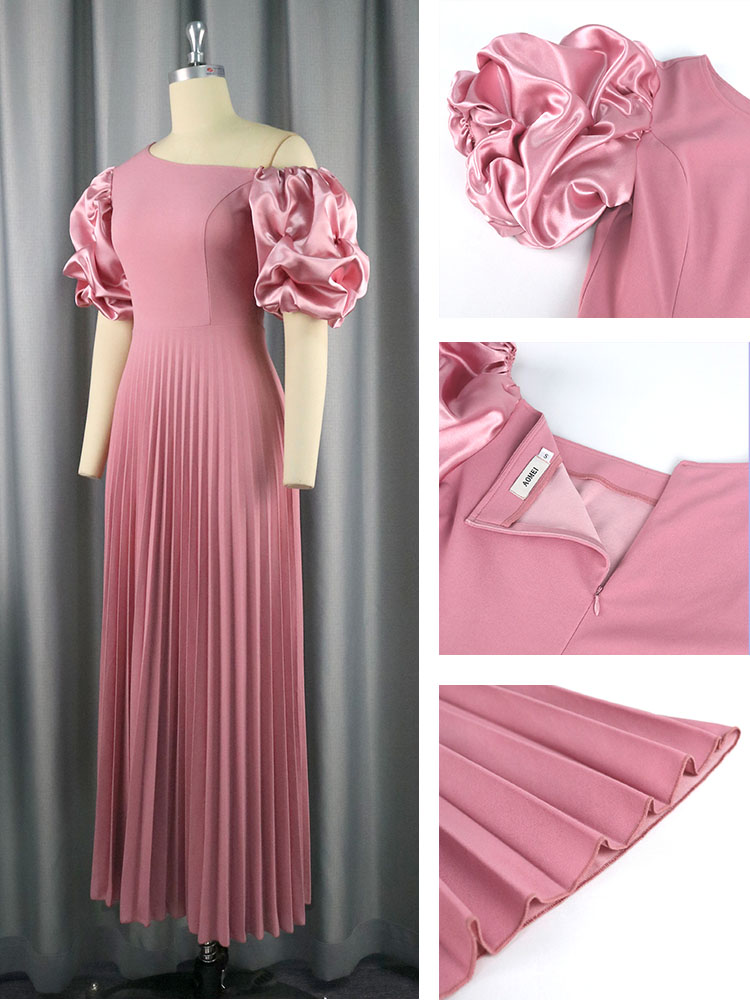 Styles: Irregular Puff Short Sleeve High Waist Bodycon A Shaped Long Pleated Dress for Women Banquets Party