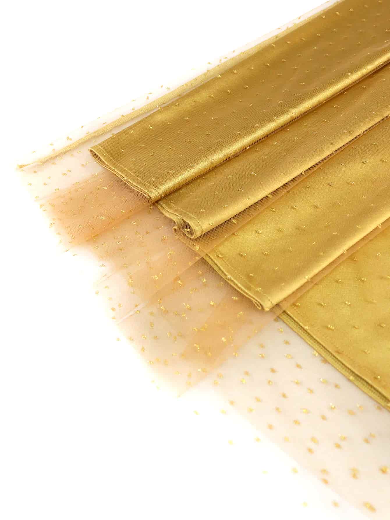 Soft Shiny Satin Sleeveless High Waist A Line Tulle Polka Dot Design Long Dress