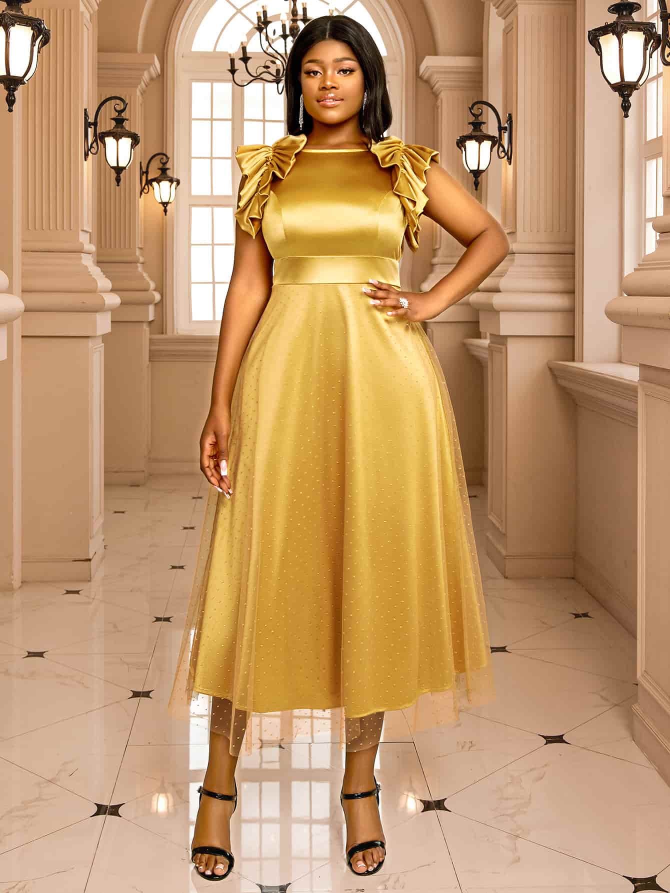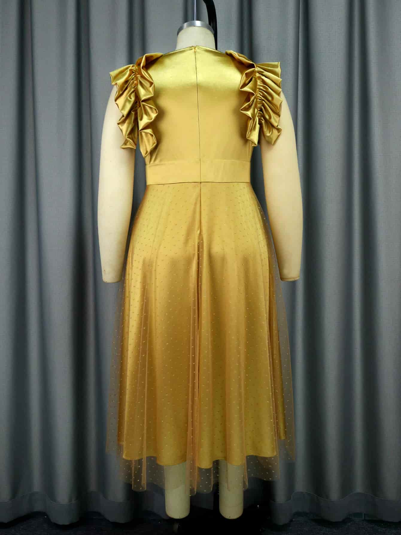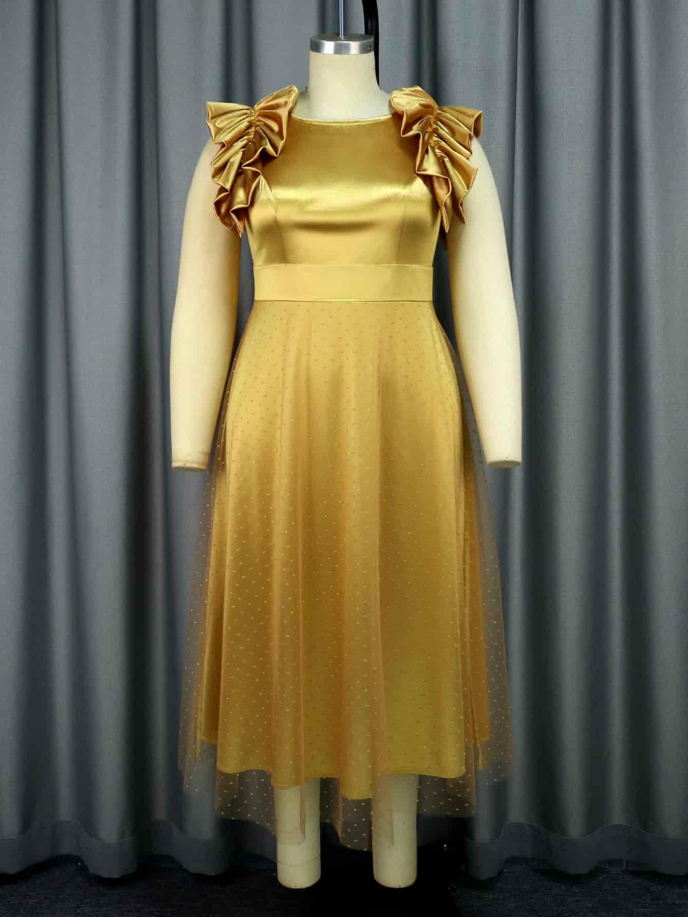 Styles: O neck dress with ruffles high waist a line ankle length dress elegant,tulle design make the dress special.