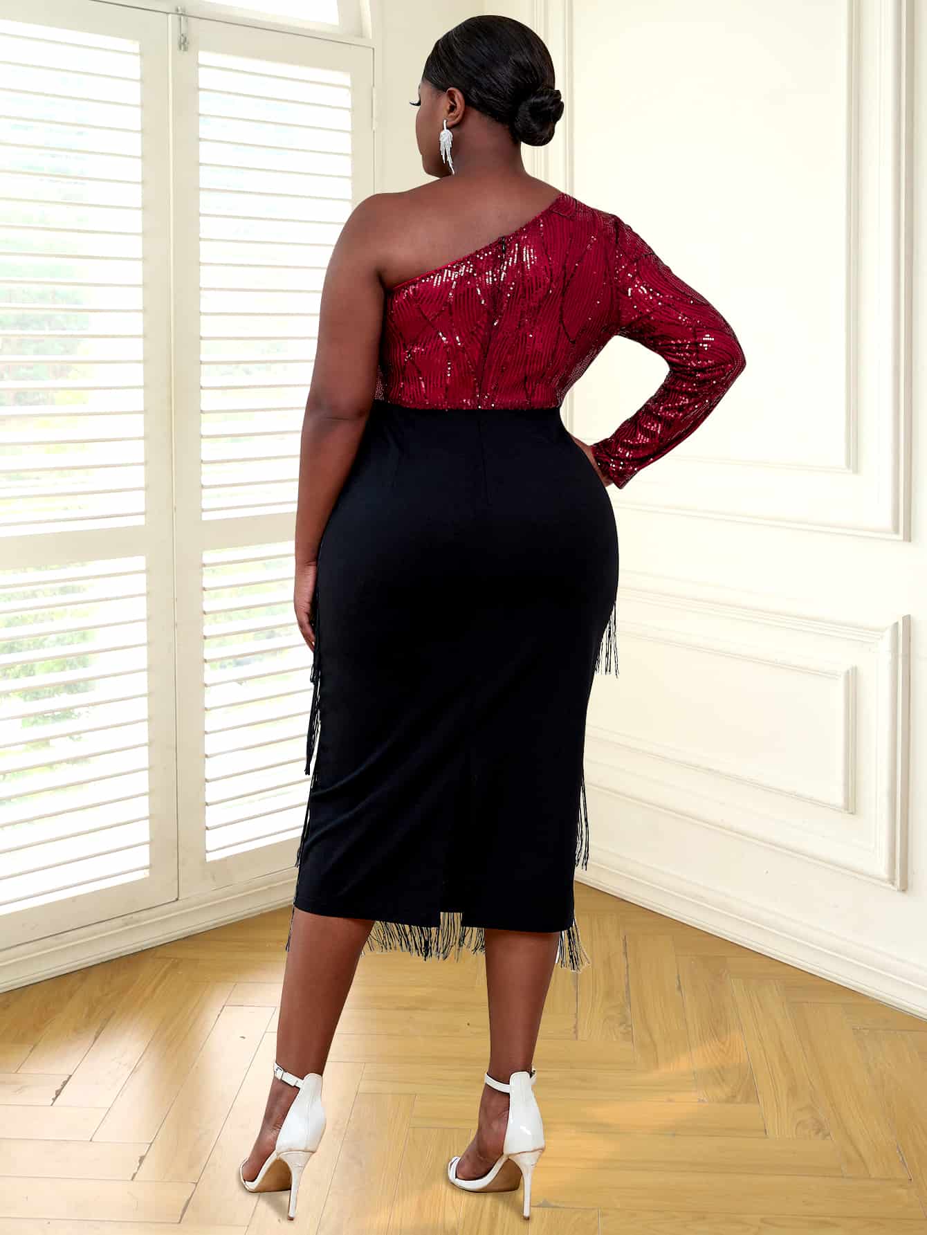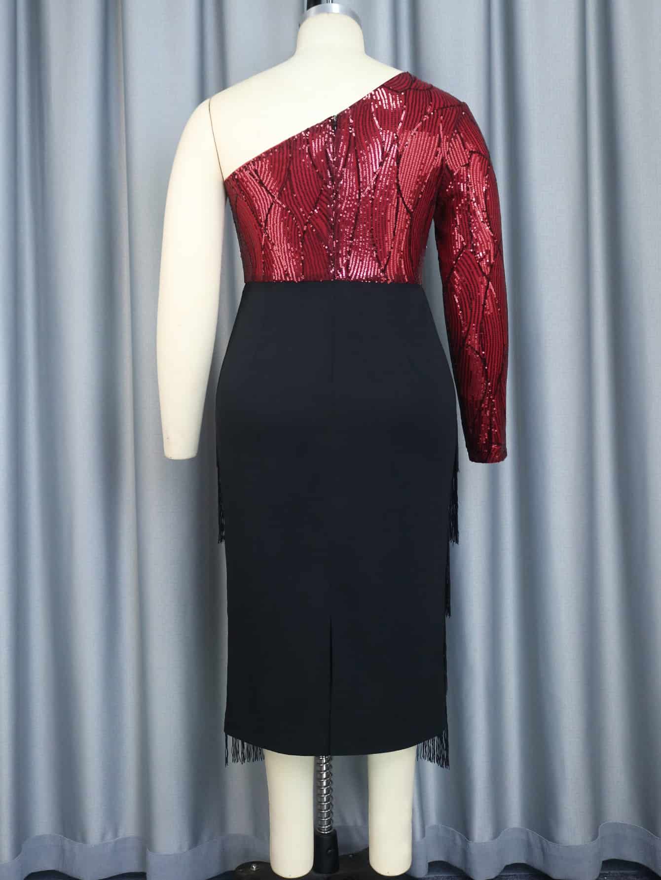 One Shoulder Sleeve Sequins Empire Evening Birthday Event Midi Gowns Outfits.