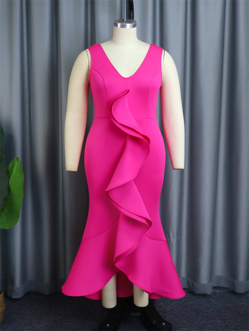 Dress Design: V Neck,Sleevleess,High Waist,Package hip,Irregular