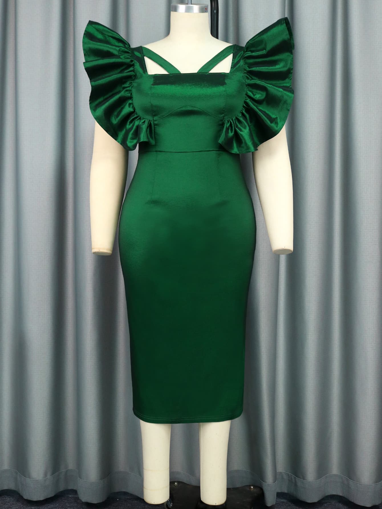 Sleeveless Ruffles Slim Fit Empire Package Hip Midi Evening Party Dresses for Women