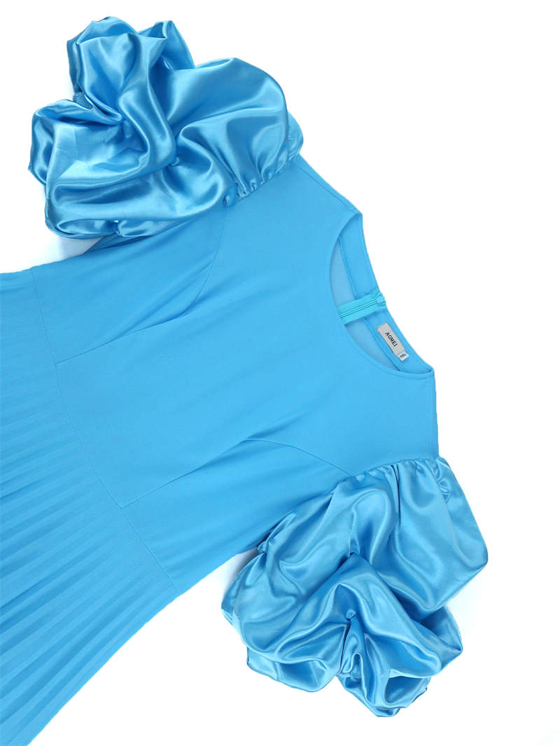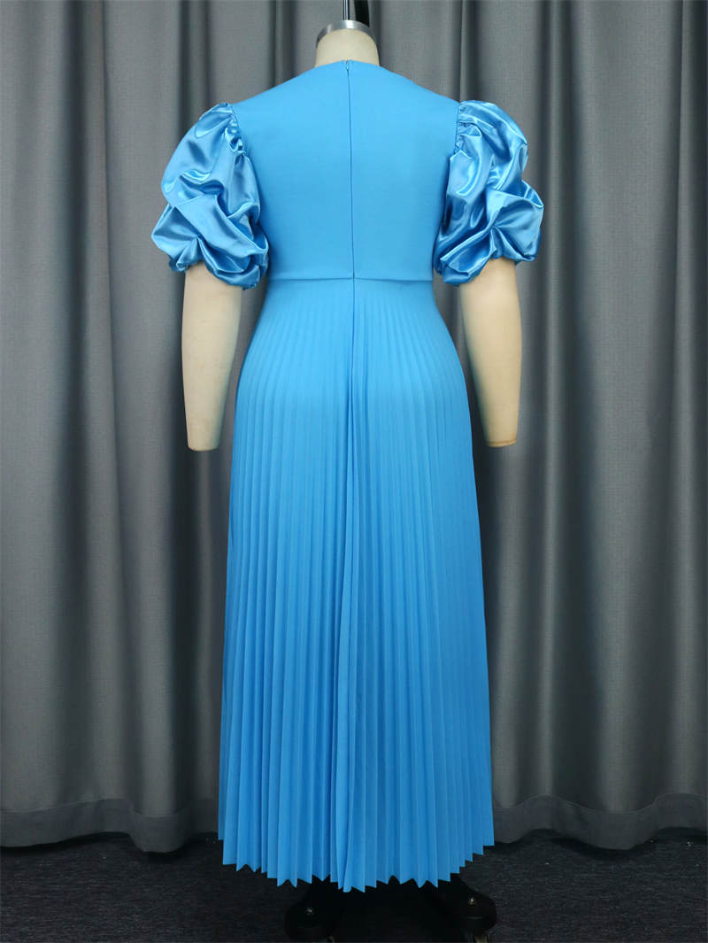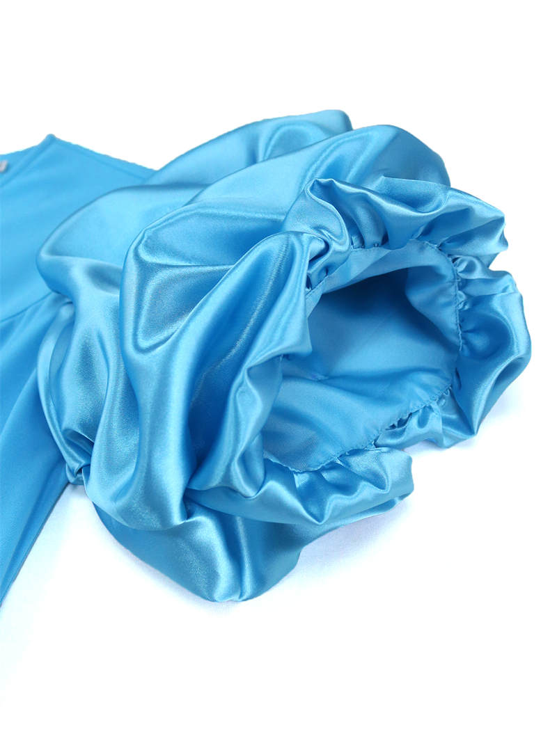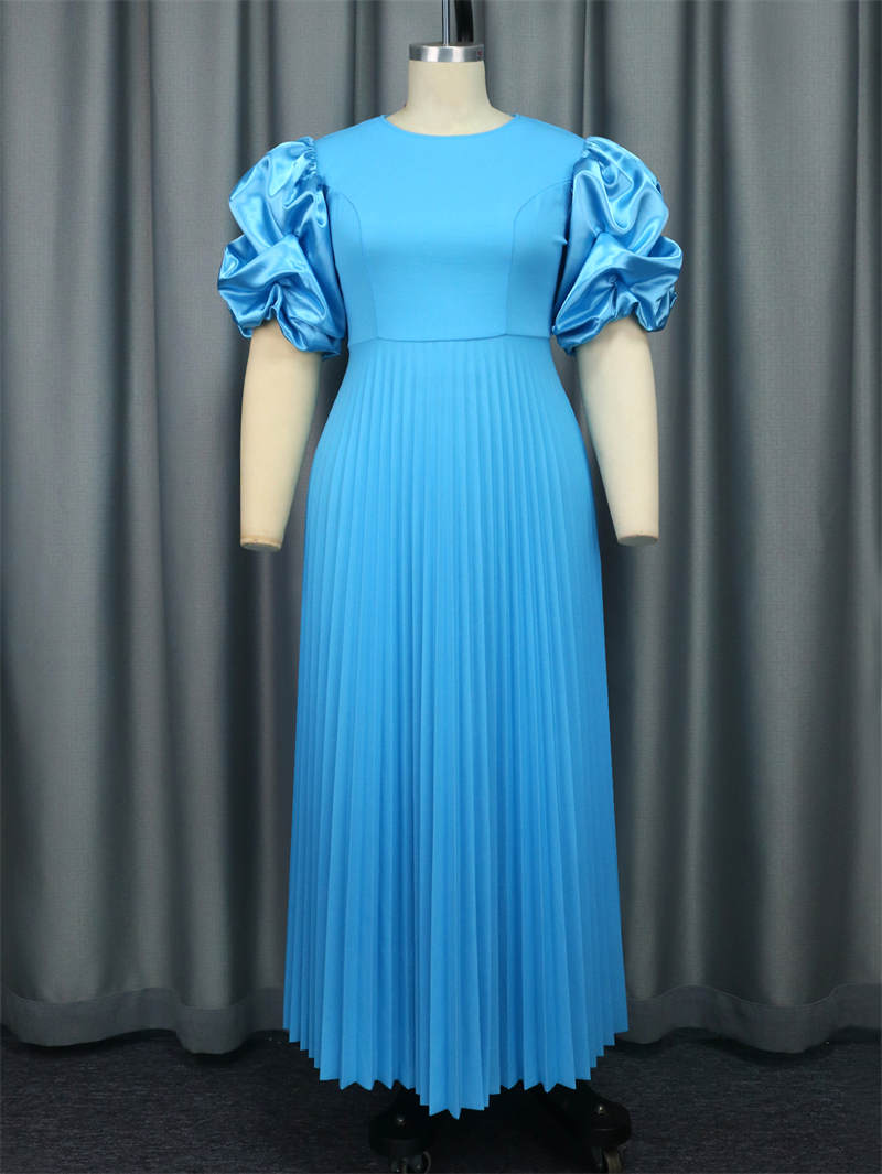 A Sapphire Blue satin puff sleeve long dress demands womens requires for casual,daily,cocktail occasions.