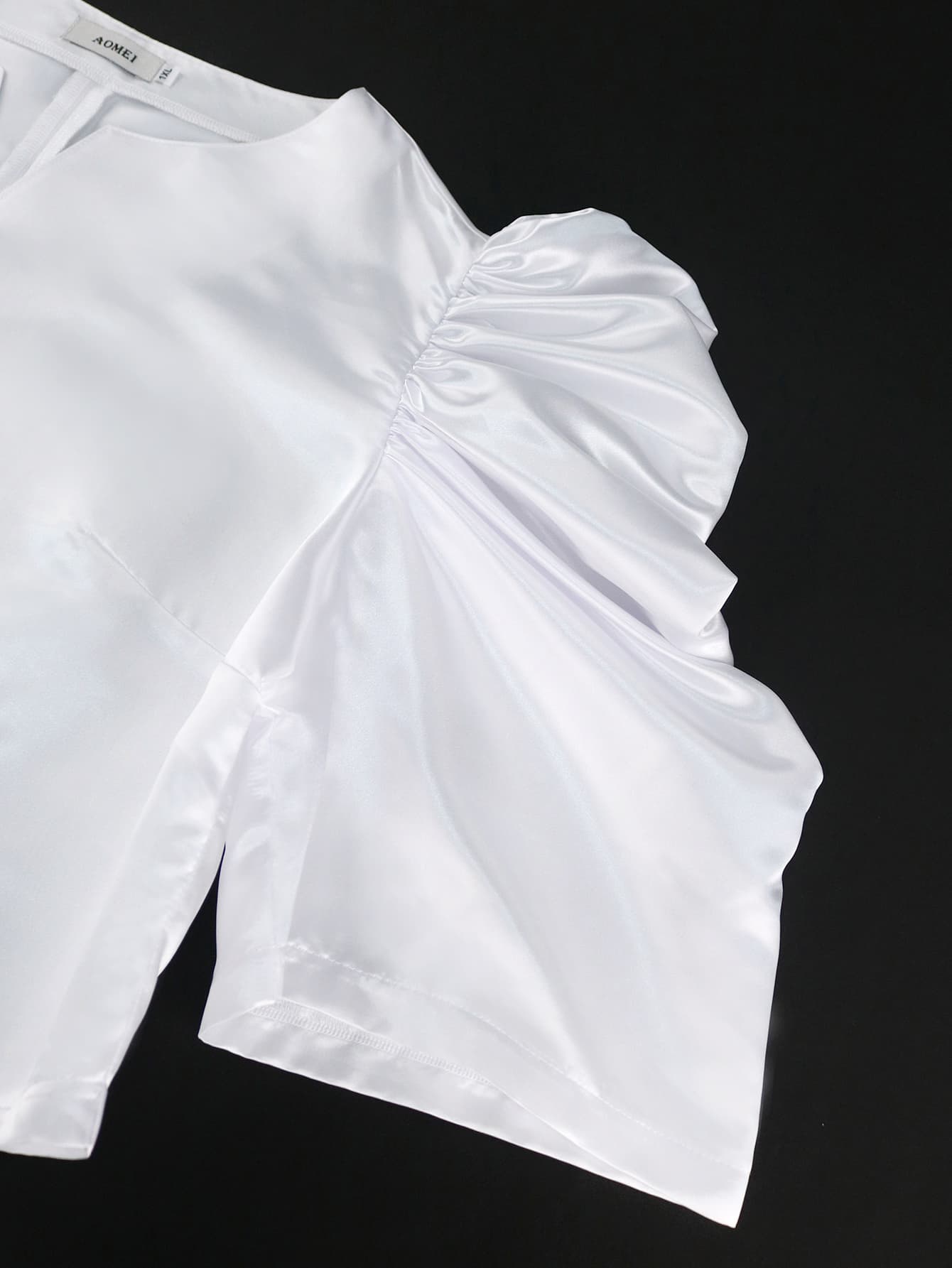 Styles: Shiny Satin,Short Sleeve,V Neck,Short Pullover Tops Blouse.