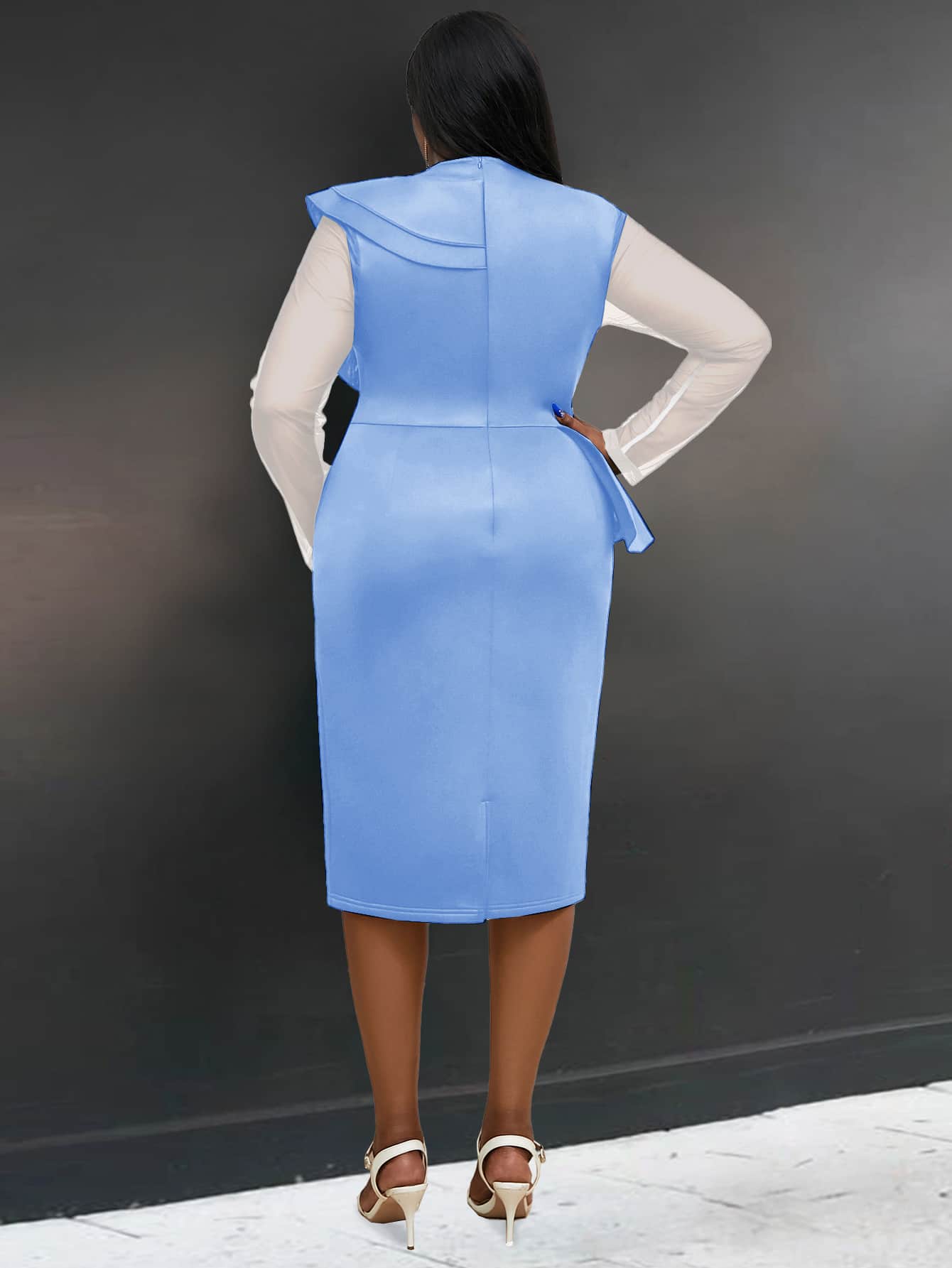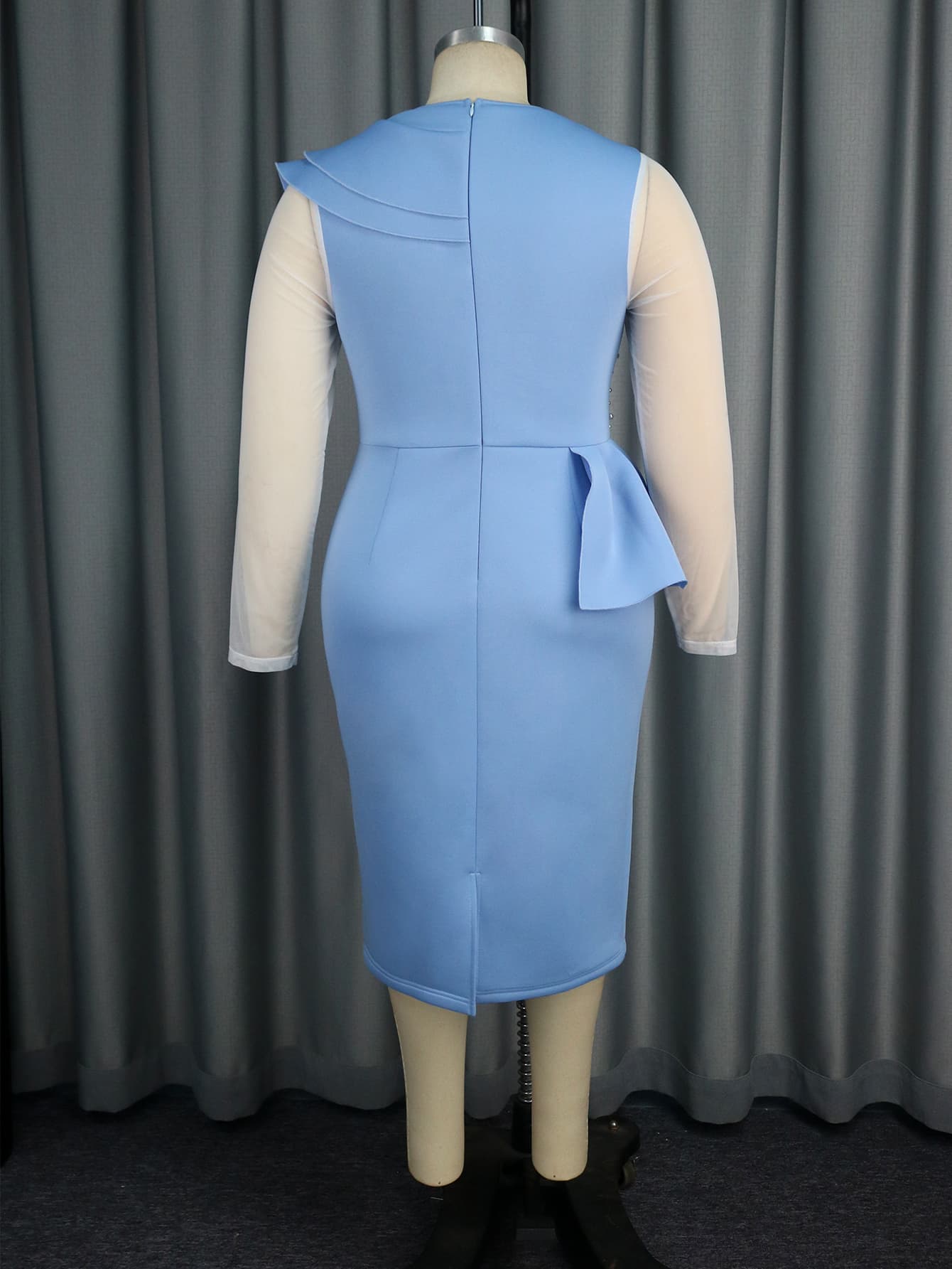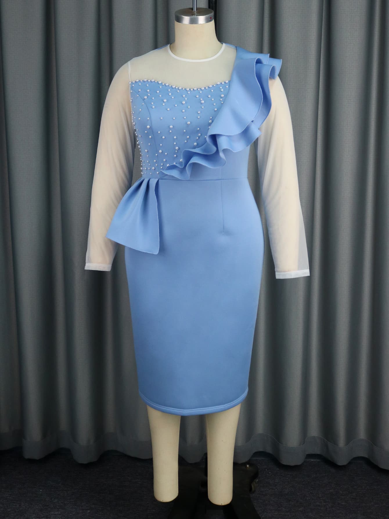 Step into elegance with our Plus Size Evening Party Dress, designed to celebrate curves with style and sophistication. This gown features a classic O-neckline and long sleeves with mesh patchwork for a hint of allure. Delicate beading embellishments add sparkle, while ruffle details accentuate the bodycon silhouette, creating a flattering shape that hugs your curves beautifully.