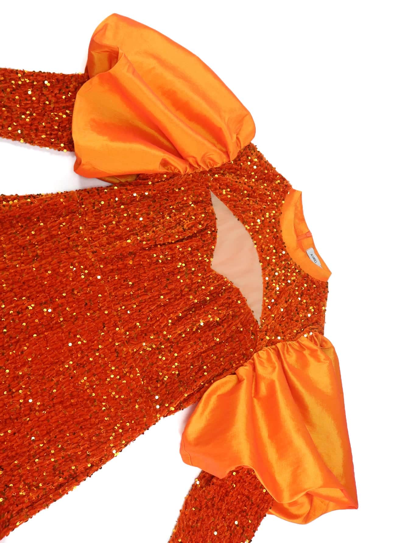 Mock Neck Sparkly Long Lantern Sleeve O Neck Cut Out Bodycon Women Sequins Dress