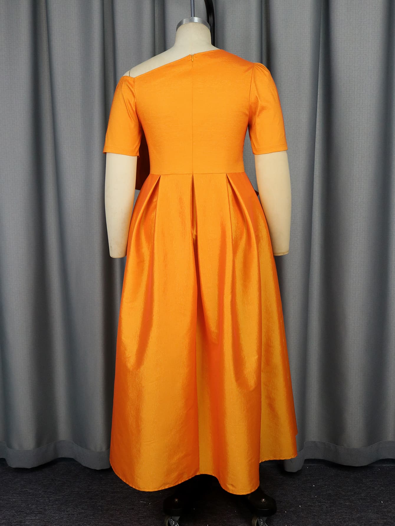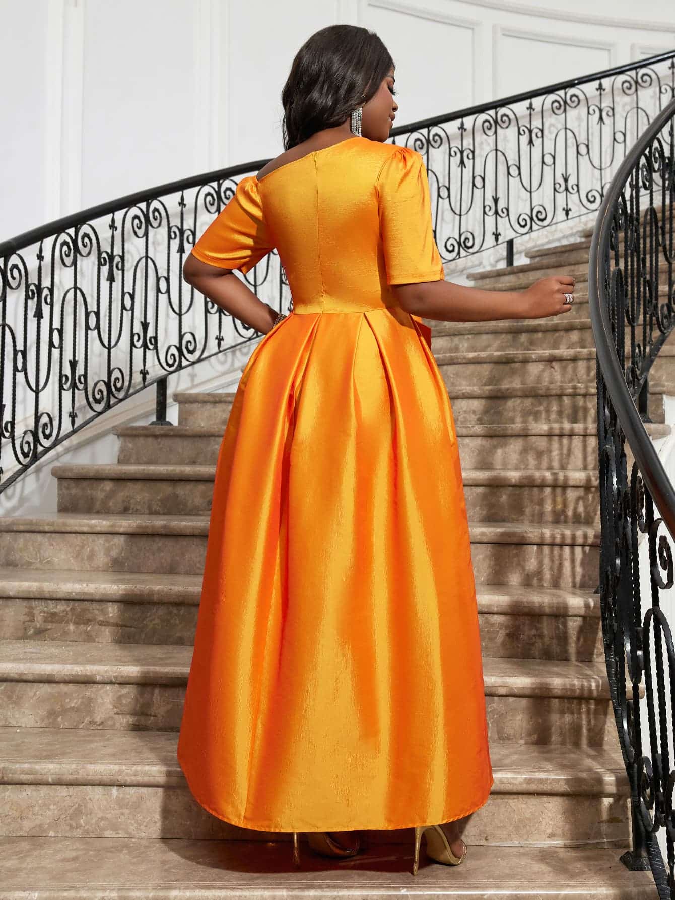 Styles: Short Sleeve,High Waist,Solid Color,Shiny Back Zipper Clouser,A Line Princess Long Party Dress.