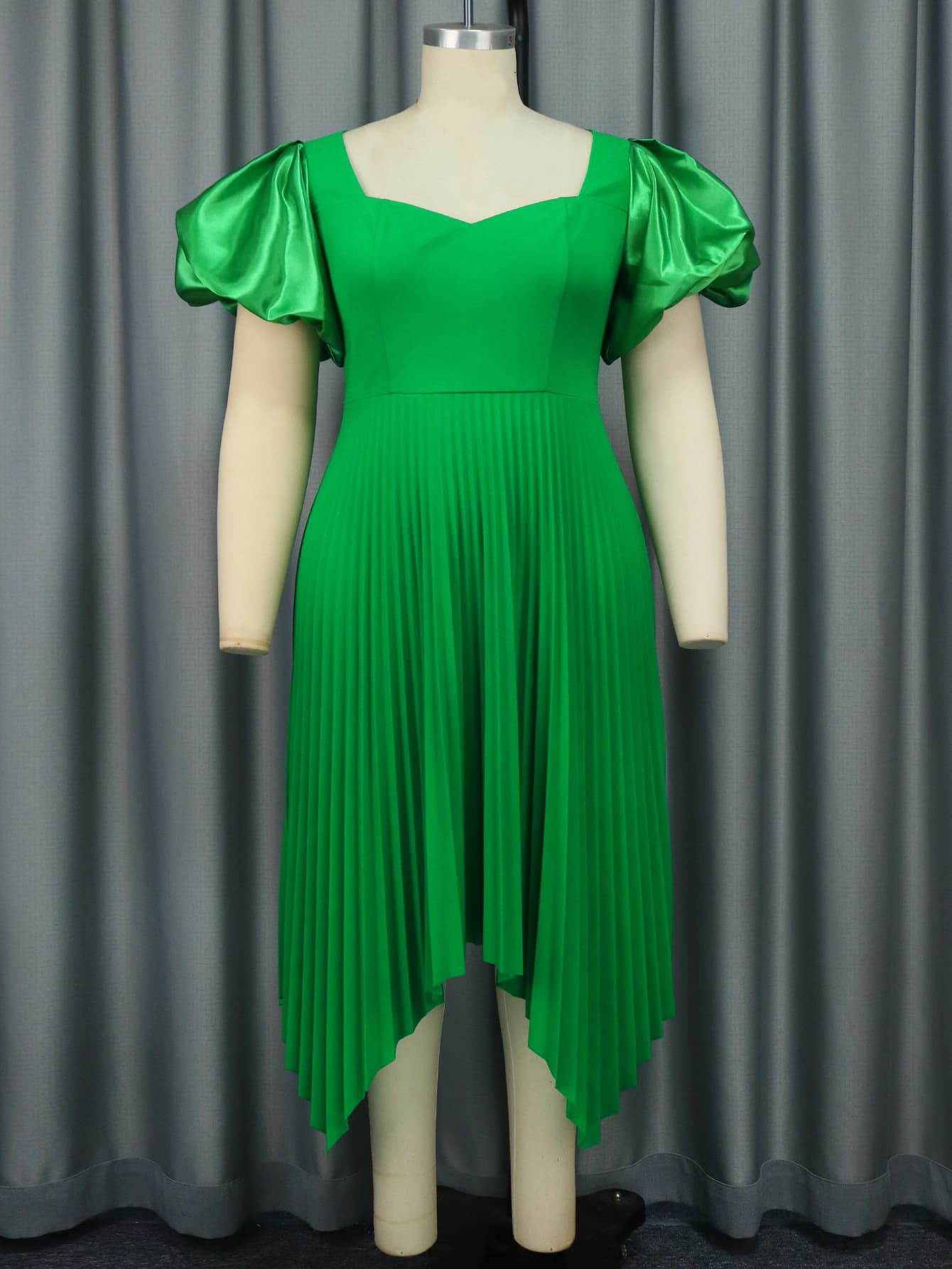 Styles: Lovely Short Puff Sleeve,Empire,A Line,Irregular Folds Casual Work Asymmetrical Midi Dresses
