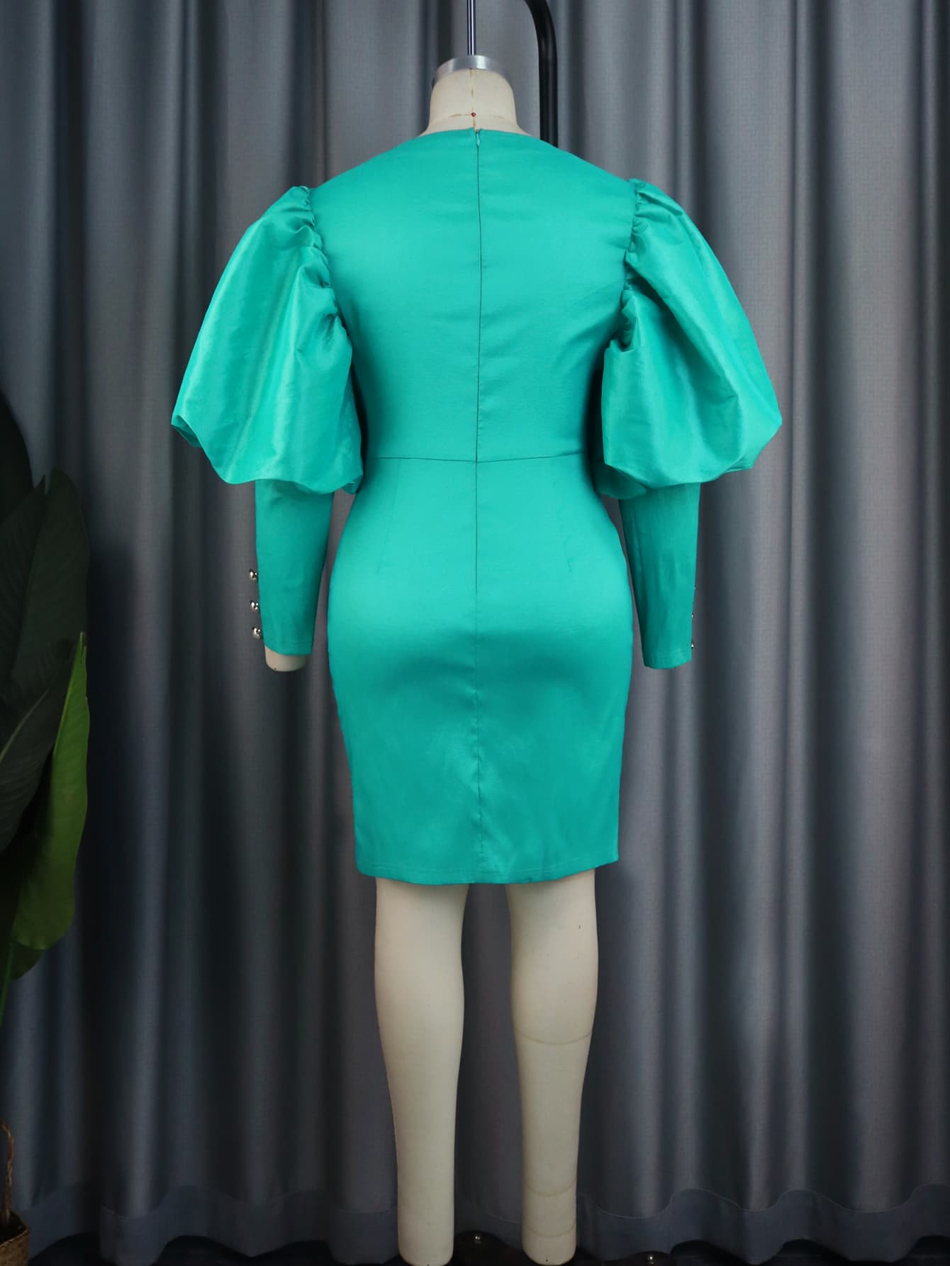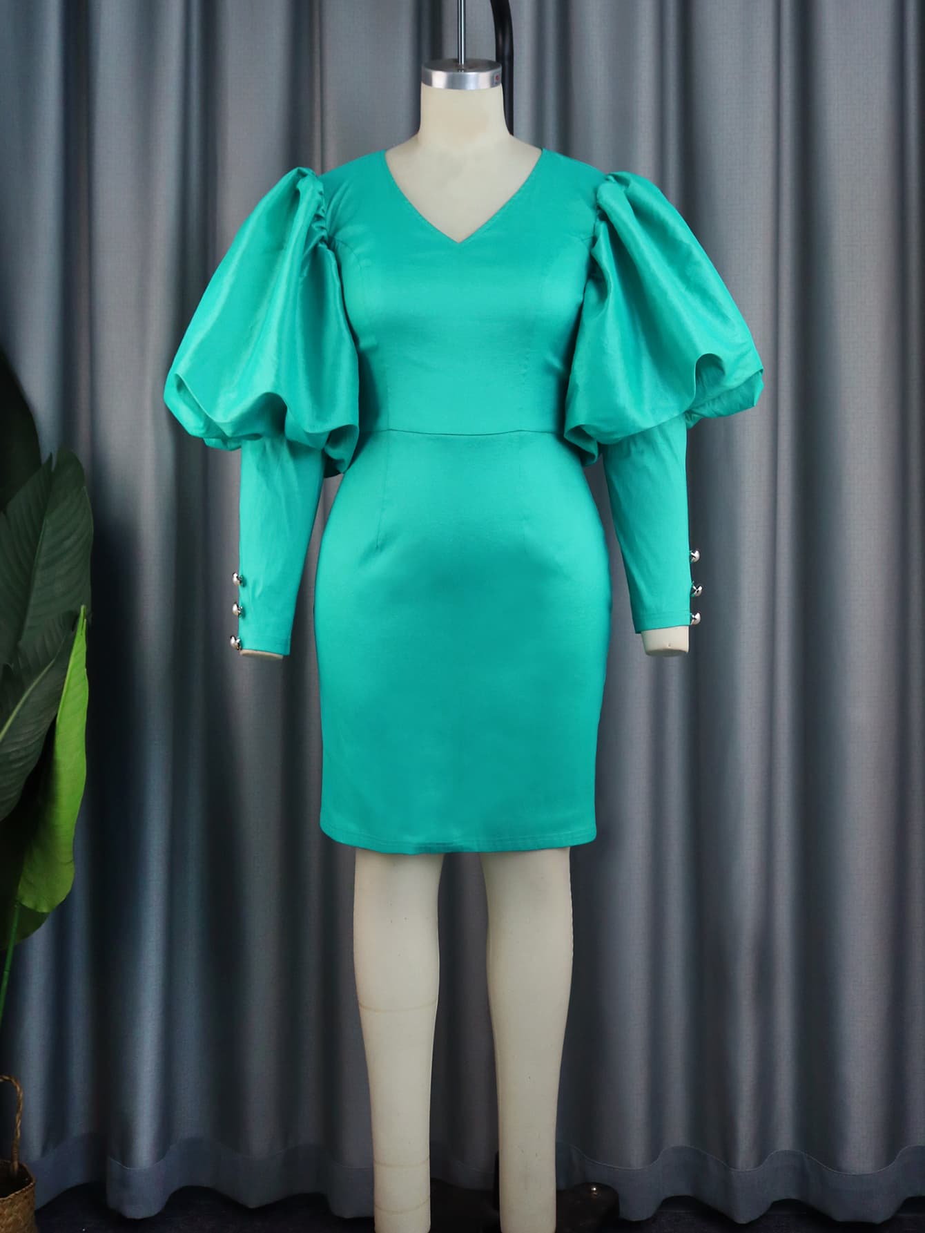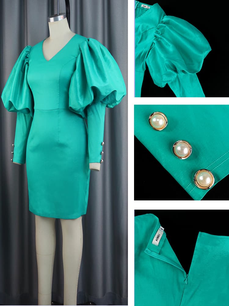 Design: V Neck,Long Lantern Sleeve,Button Design,Pullover,Back Zipper