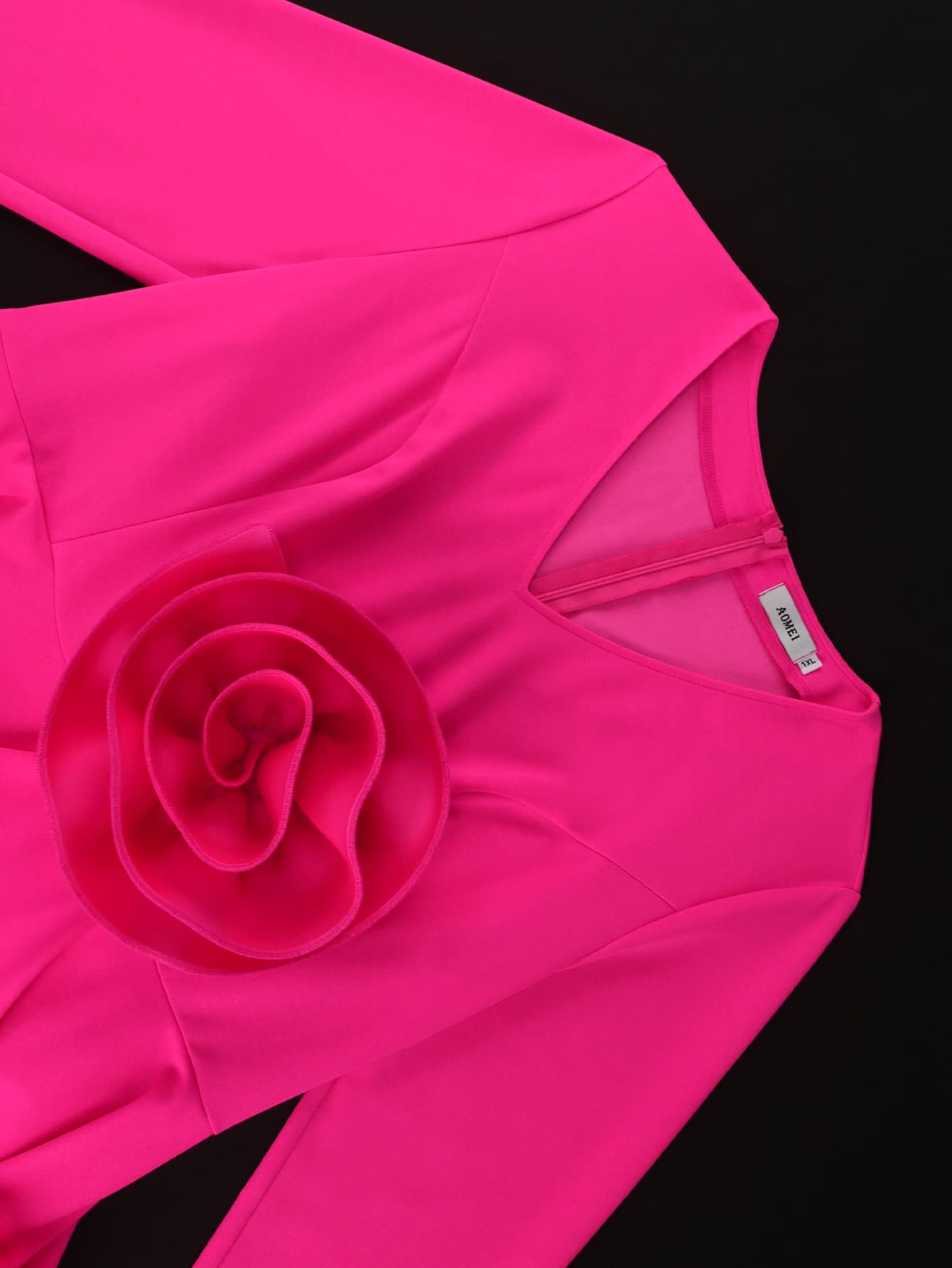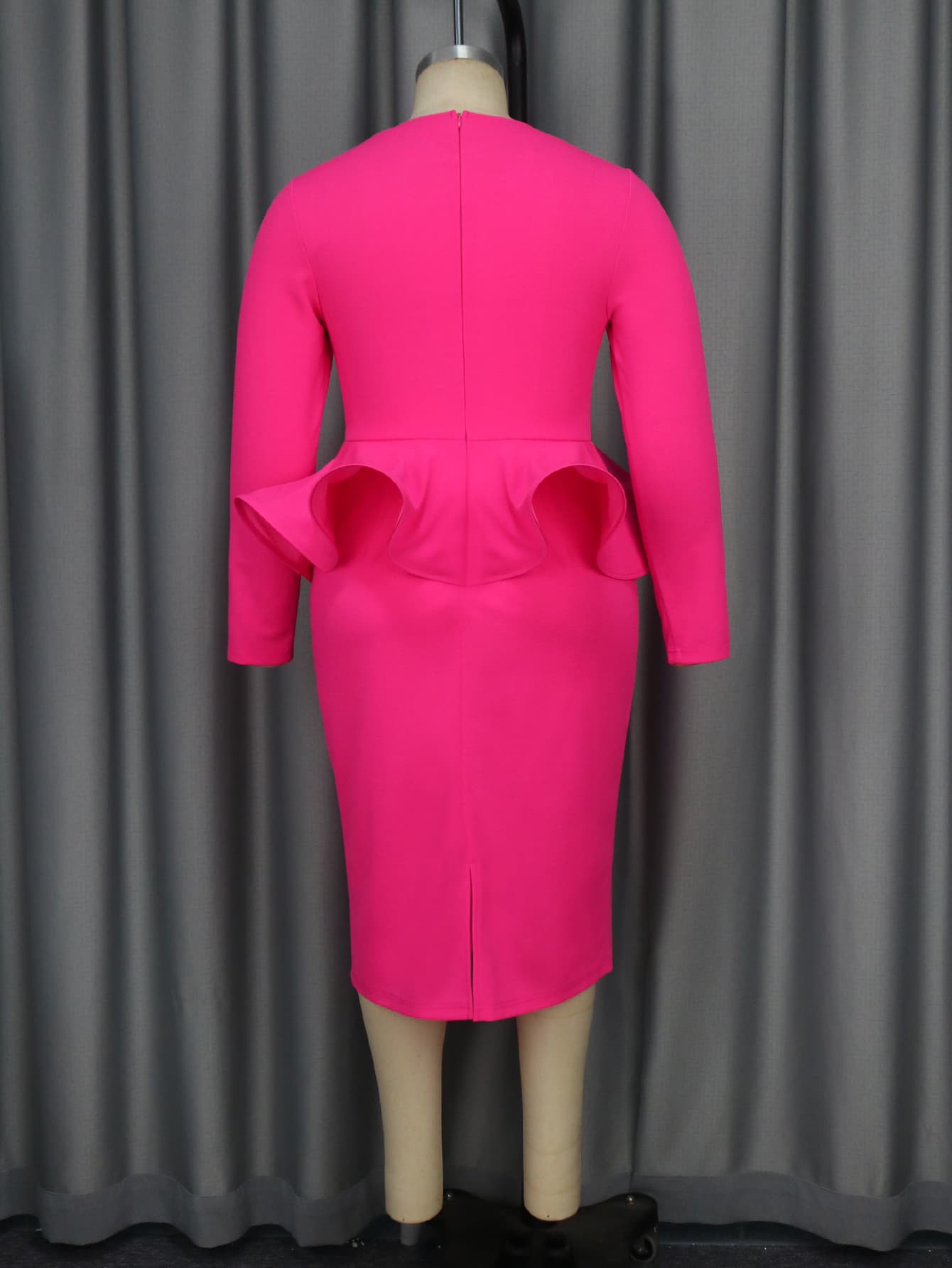 Stand out in style with this stunning Fuchsia Party Dress, featuring a unique twist-textured fabric that brings depth and elegance to your look. The V-neckline highlights the décolletage, while the long sleeves provide a touch of sophistication, making it ideal for both day and evening occasions.