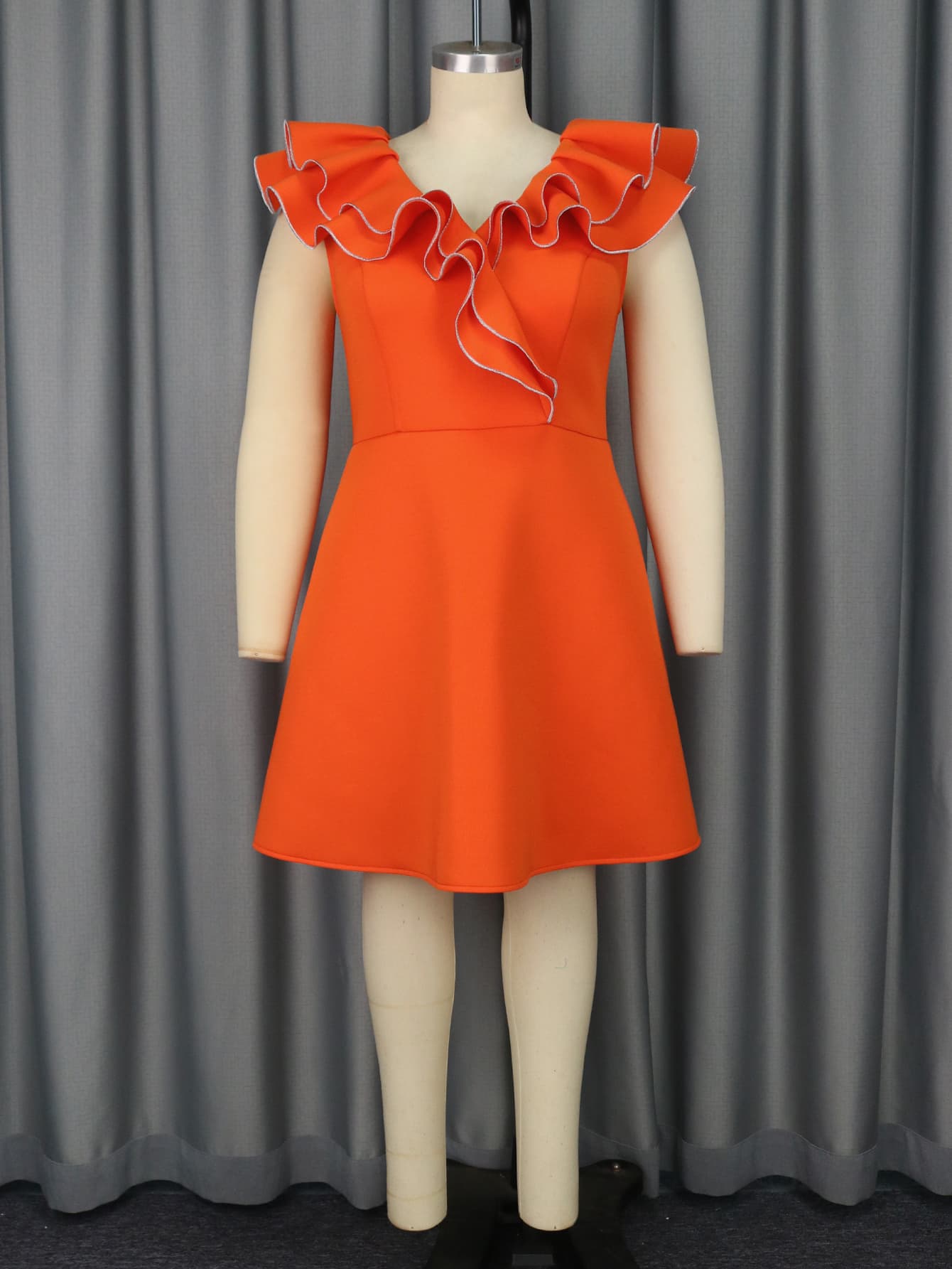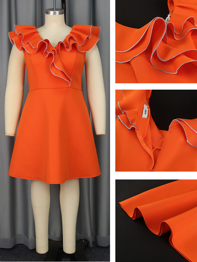 V Neck Sleeveless High Waist Ruffles Women Party Dress Wholesale,OEM,ODM,Customized