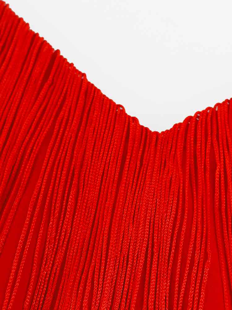 Design: V-neck,sleeveless,high waist,layered fringe,hem tassel women dress