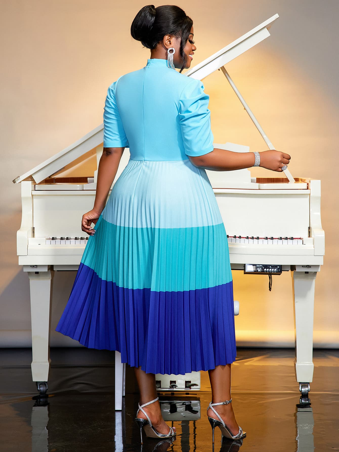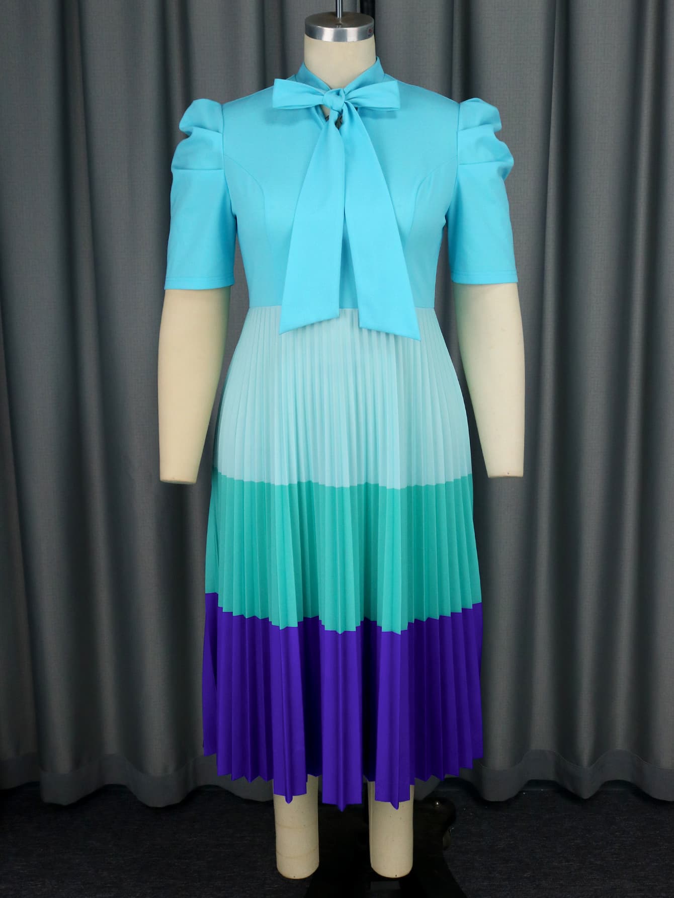 Dress Style:o neck,color block,short sleeve,a line pleated,pullover,invisible zipper,midi length dress.