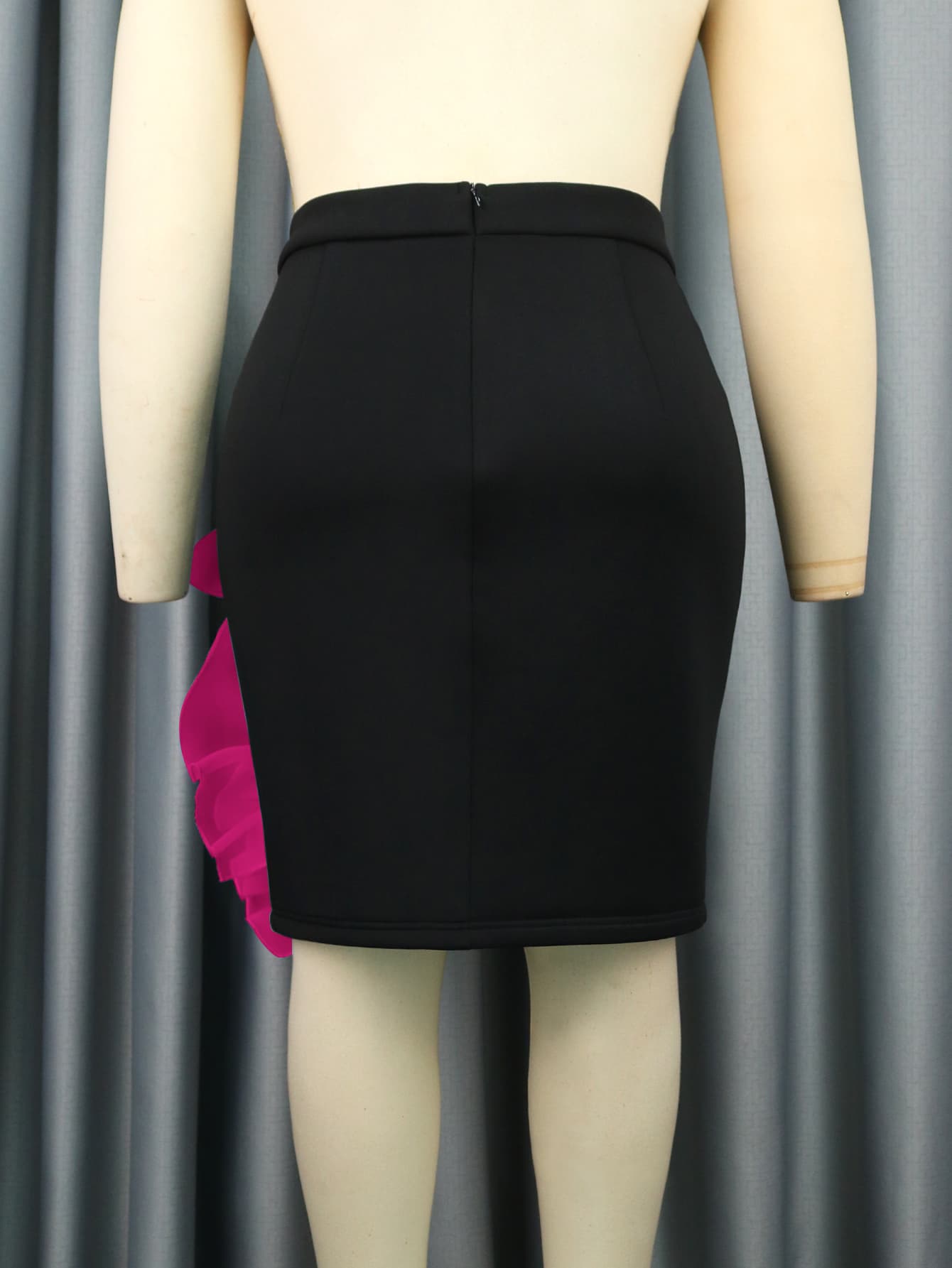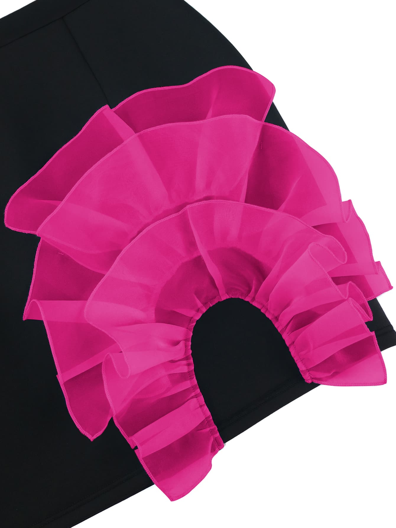 Add a touch of feminine flair with our skirt, featuring bold pink ruffle trim and stylish cut-out details. This unique skirt combines classic sophistication with a modern twist, making it perfect for both any evening event.