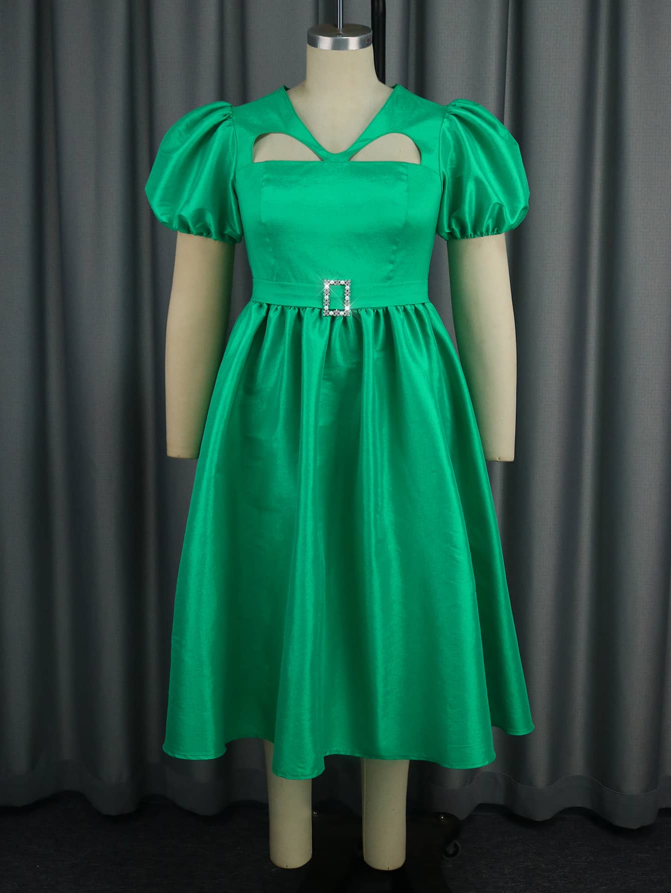 Dress Style: v neck, short puff sleeve, cut out, a line, invisible zipper,midi length dresses for women.
