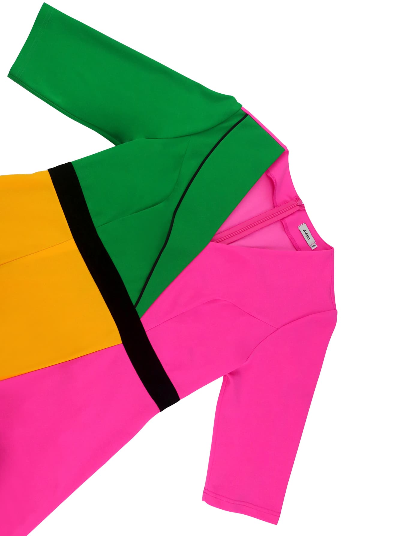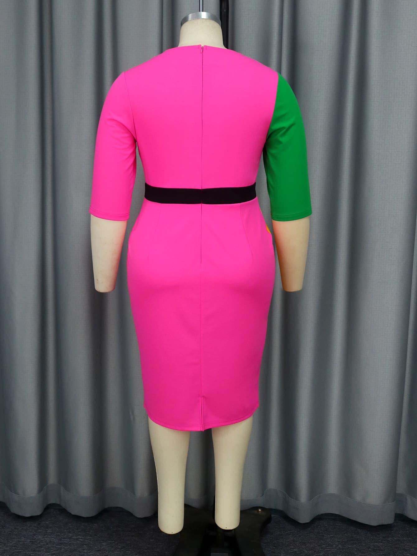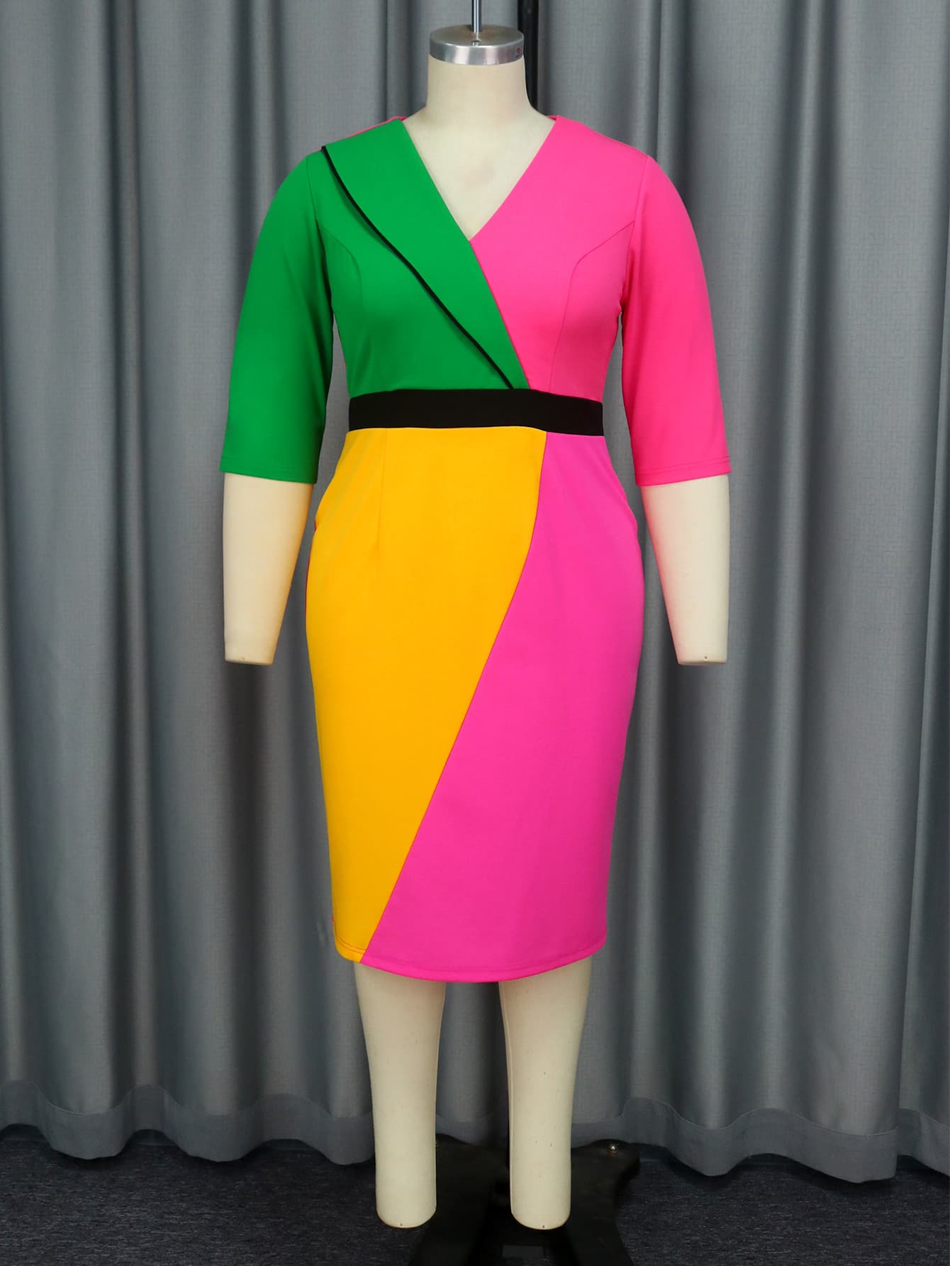 Stylish Color Block Design: Elevate your look with our chic color block women's dress patchwork contrasting colors for a fashionable statement.