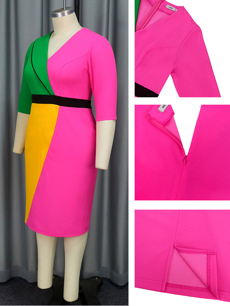 Dress Style:V neck,half sleeve,color block,slim fit,pullover,invisible zipper,knee length dresses.
