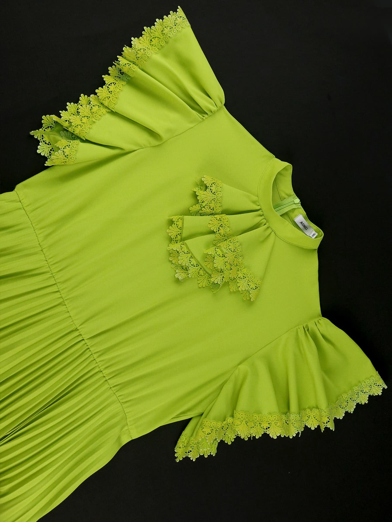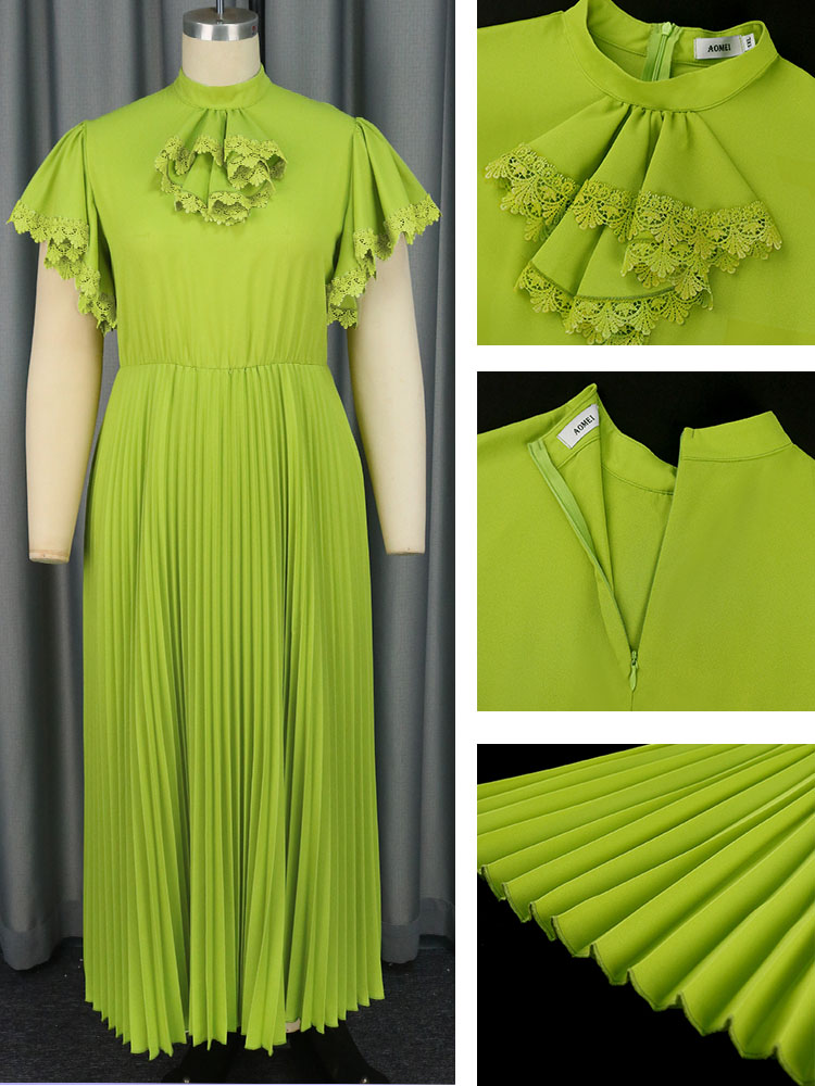 Styles: Half high neck,short sleeve,lace decoration,high waist,a line,ankle length pleated women pleated dress wholesale